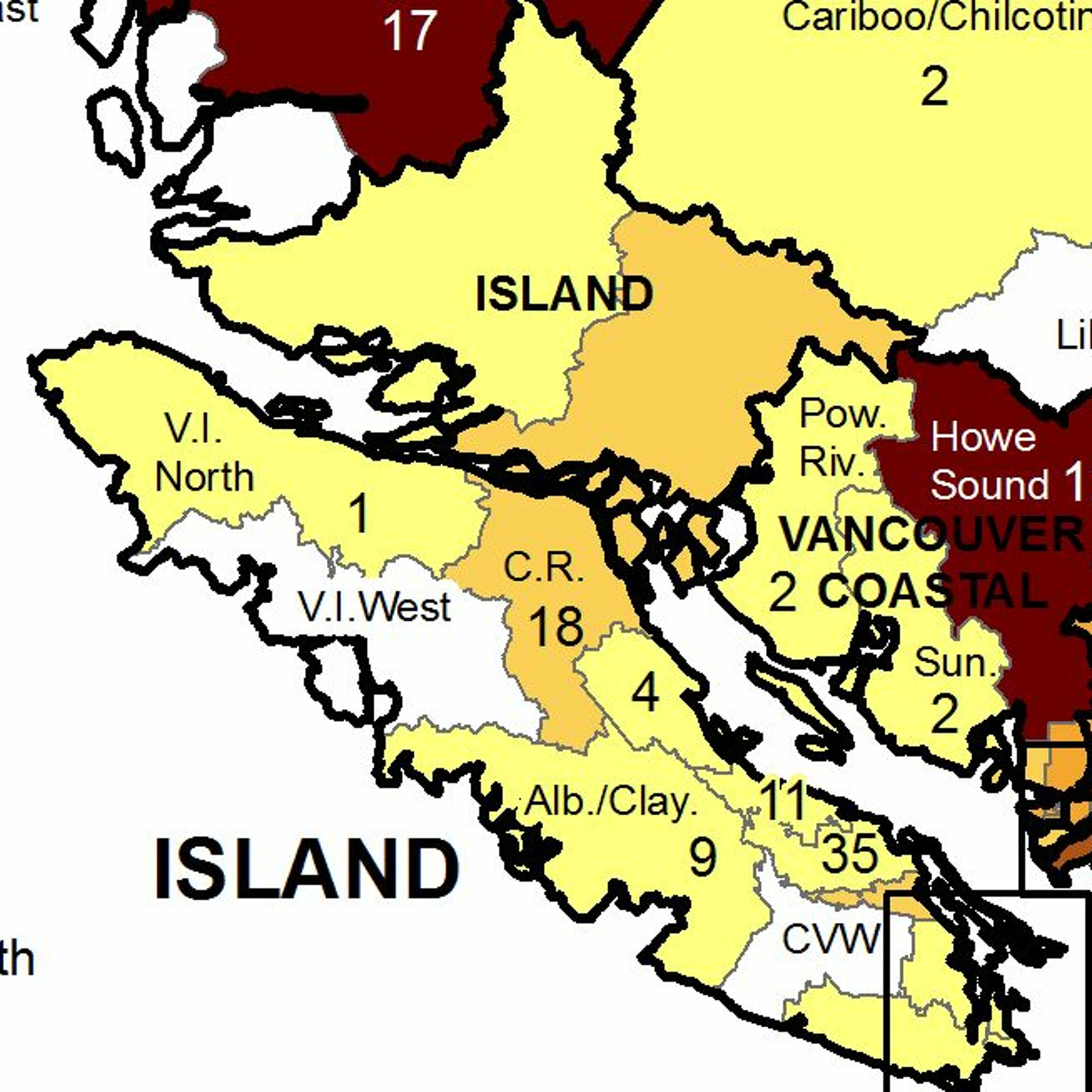 However the epi-Week report for the week ending on Saturday March 20th still shows 18 cases in the Greater Campbell River Health Area.