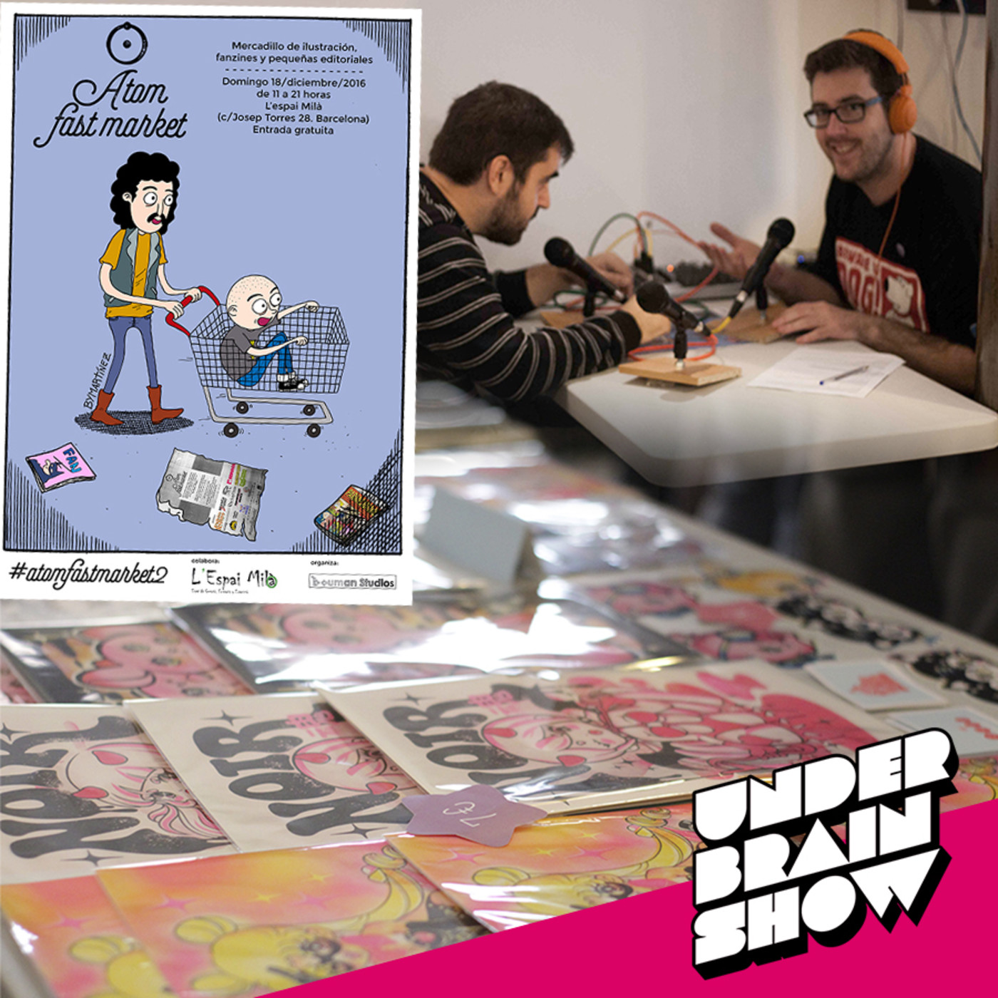 Programa en directo desde el mercadillo de ilustración, cómics, fanzines y pequeñas editoriales en la feria Atom fast market.