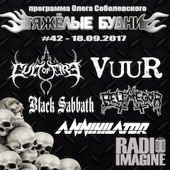 | В 42-м выпуске программы "Тяжёлые Будни" от 18.09.2017: рассказ о об очередных неприятностях у DECAPITATED, обзор нового альбома BELPHEGOR, воспоминания о классике BLACK SABBATH, и, как всегда, премьеры, анонсы предстоящих концертов и последние новости из мира тяжёлой музыки. |