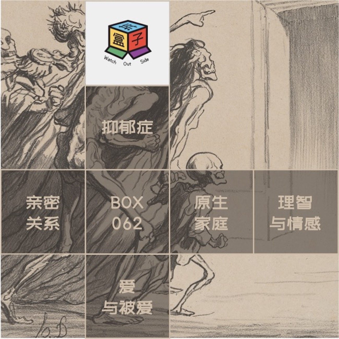 心理病症无声蔓延,却往往来势凶猛。 当黑狗蛰伏,阴影挥舞着生命的镰刀,像疯子一样追赶着我们的时候,谁又能保证自己躲得过? 但没关系,重新感受到爱,也只需要一瞬间。 我们还会有无数个那样的瞬间。 "There is a crack in everything, That's how the light gets in." **温馨提示:本期播客是在马路边录制的即兴聊天,会有各种各样人间杂音,也可能会有一些录制得不是特别清晰的地方,介意慎入。 拆盒子时间: Part.1 世界的感知 (00:00~21:21) 06:51 自救措施:高频交流+心理疏导 07:53 一个反观自我的契机:审视被忽略的生命痕迹 09:36 避不开的原生家庭,和躲不掉的糟糕世界 13:35 在黑暗的世界里打开共情,往往只有痛苦 14:25 一片废墟的头像,正是对世界看法的投射 15:36 强制关闭共情冷漠表现,导致更强烈的反弹 16:59 从未停止过的尝试:寻求生活的平衡点 17:42 播客的此刻,对我们来说是乌托邦的存在 18:42 只要你按自己的方式活,自由在这片土地就没有消失 20:26 MBTI里描述的虚假共情,是怎样一种共情? 21:21 为什么说普遍的认知共情或许更重要? 摆脱共情 豆瓣,[加] 保罗·布卢姆 Part.2 爱的表达 (21:22~46:07) 23:57 承认爱的缺失,但忽视它的重要性 24:34 纠正:爱是重要,但在我的表达体系里有点轻 25:49 没切错台,我们两个AI也开始聊情感了 27:40 在亲密关系里,学会了表达爱 28:24 进行爱的布施:深夜对朋友们的表白 29:28 一些情绪的开关难以关停的时刻 31:26 构建supporting system:朋友也是重要的一环 32:10 朋友与爱人虽短暂,却也可以成为星星兜里重要的人 33:50 上海之旅,收到了10个朋友的住宿offer 35:55 抽离出来看自己:AI模式对话下的坦诚 38:50 伪装成AI的人类 vs. 伪装成人类的AI 40:08 在亲密关系的表达里,认知人的差异性 45:06 是危机也是契机,解读暗礁也是某种人与人之间的共创 46:07 因为烂人的存在,善良的人也需要爪牙 EP31《爱的起源》:后天要见你,我从今天就开始期待了 小宇宙,纵横四海 今生是第一次 (2017) 豆瓣,朴俊和 Part.3 关系的构建 (46:08~51:50) 50:14 被好的关系滋养过的人,也会在身上沉淀下足够好的成分 51:25 恋爱的时候,就还是启动恋爱脑吧 52:08 构建你的Neighborhood watch,无论是朋友/家人/爱人还是其他 54:46 一家子集齐四个不婚不育的反骨 55:50 血缘关系真的是持久关系稳定的保障吗? 57:45 再如何不扯原生家庭,它都影响人许多 58:30 在家庭暴力阴影下成长的人,远比想象的多 59:42 都在教育你如何成为精英,没人教你如何去爱 60:06 决定不婚很简单,解释不婚这件事比较复杂 61:42 选择生育的人,才更应该想明白是为什么 62:29 曾在朋友圈大胆开麦:不要对婚姻有浪漫期待 63:59 一个结婚的浪漫说法:互相拥有对方的心在制度上公开化 65:58 日常生活中无论开心痛苦,请允许自己在情绪里待一会儿 69:10 抑郁症是心理和生理两个层面的suffer,希望也不要忽视对身体的照顾 Music by Audionautix.com 关于我们 两个广告人的Chitchat. 尝试拆除、把玩和重建人类世界的各种「盒子」 探索世界,觉察自我 Watch Out while Watching Outside. 一起拆盒子 欢迎在 Apple Podcasts / 小宇宙 / 网易云 / 汽水儿及其他泛用型播客客户端订阅收听,也欢迎各种反馈和投递。 🌏 微信公众号:拆盒子 📧 邮箱:hi@watch-out-side.com 📆 微博:@拆盒子Watch-Out-Side 💻 网站访问:https://watch-out-side.com 📬 万花筒:https://watch-out-side.hedwig.pub/