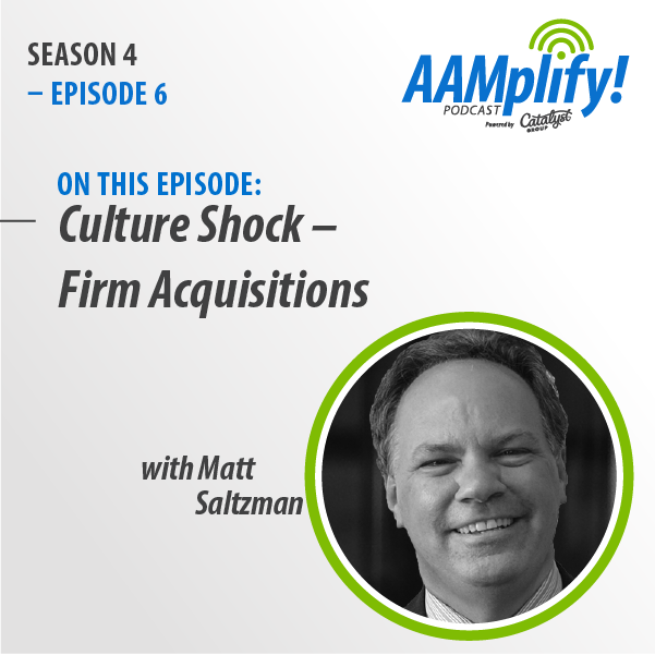 In this episode of AAMplify, interviewer Chuck Summers, Practice Growth Executive at MCM CPAs & Advisors interviews Matt Saltzman, Director Strategic Advisory Services at Strothman and Company. Chuck and Matt talk about mergers and acquisitions in the accounting accounting industry and ways to ease culture shock from non-accounting firms.
