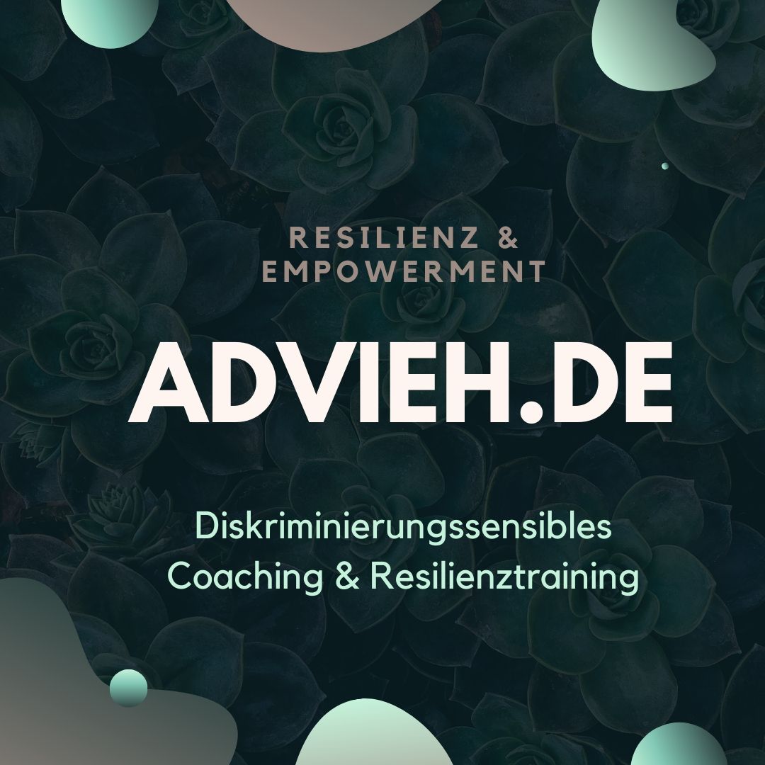 Hallo, hier möchte ich euch den Advieh Podcast vorstellen. Wenn ihr mehr zu mir oder über mein Angebot für diskriminierungssensibles Coaching, Resilienz & Empowermenttraining erfahren wollt, besucht gerne www.advieh.de!