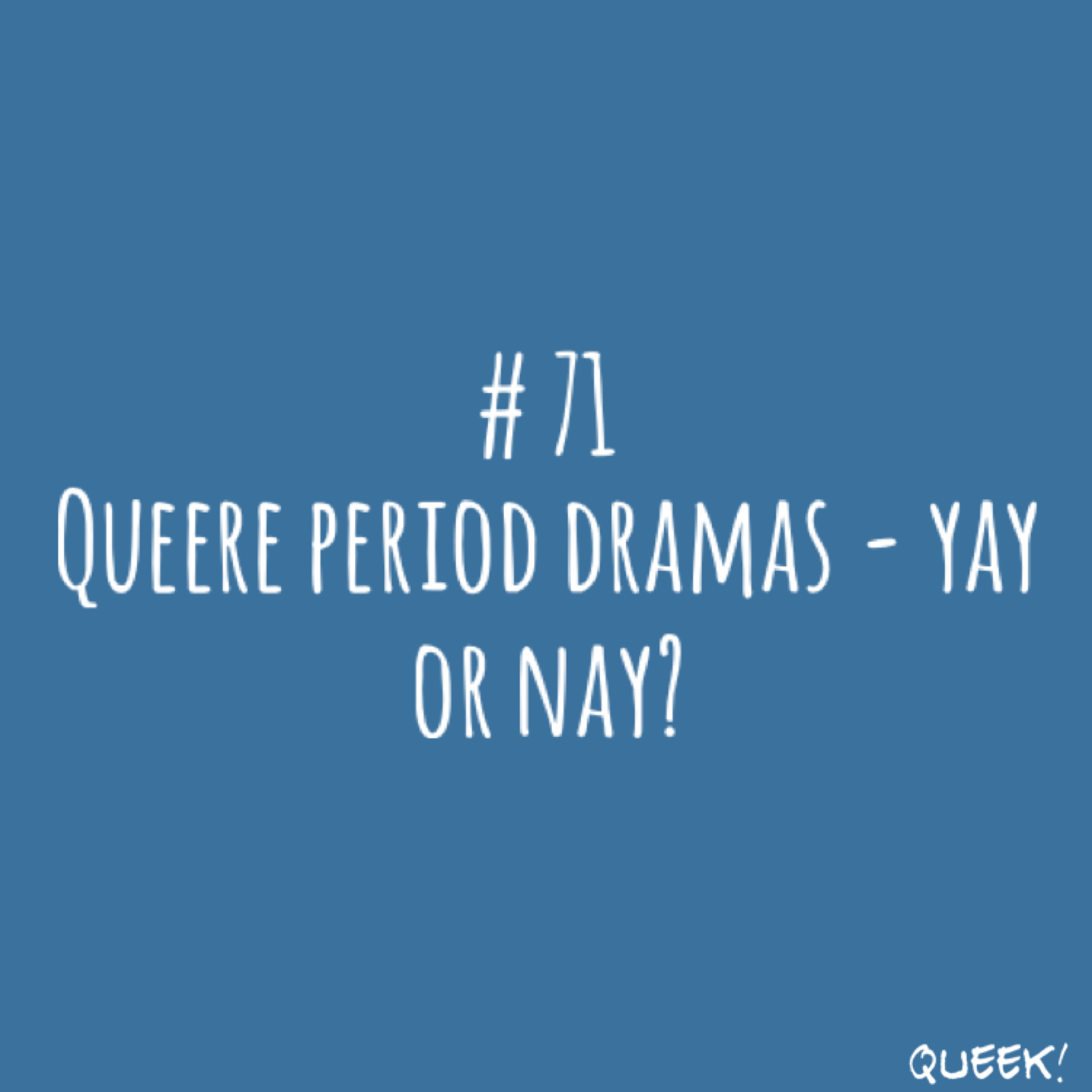 Ich bin wieder zurück und habe mal einen Blick auf ein Genre geworfen, das zwar eigentlich zu meinen Liebsten gehört, aber trotzdem vielleicht gar nicht so toll ist, wie es vorgibt zu sein, nämlich: queere period dramas. Was es schon gibt, warum es fehlt und was ausgerechnet ein Jan damit zu tun hat, hört ihr alles in der Folge.