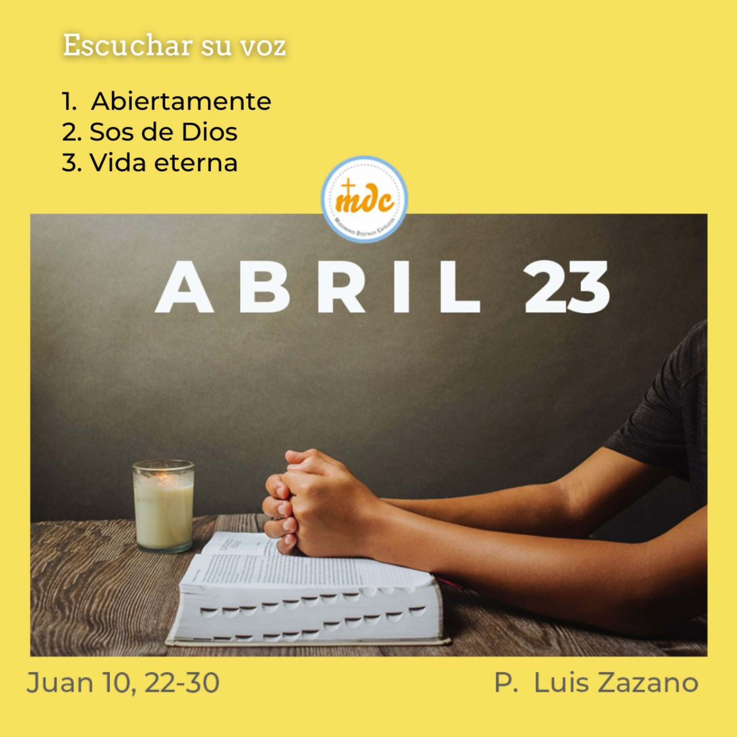 2) Sos de Dios: Escuchar a Jesús implica seguirlo. No dejes de escuchar a Dios y de buscarlo. Sos de Él y de su equipo. Ponete su camiseta y jugá para Él, porque el seguimiento de Jesús te encandila, te enamora, te cambia la visión de las cosas. Por ello seguirlo es una aventura.