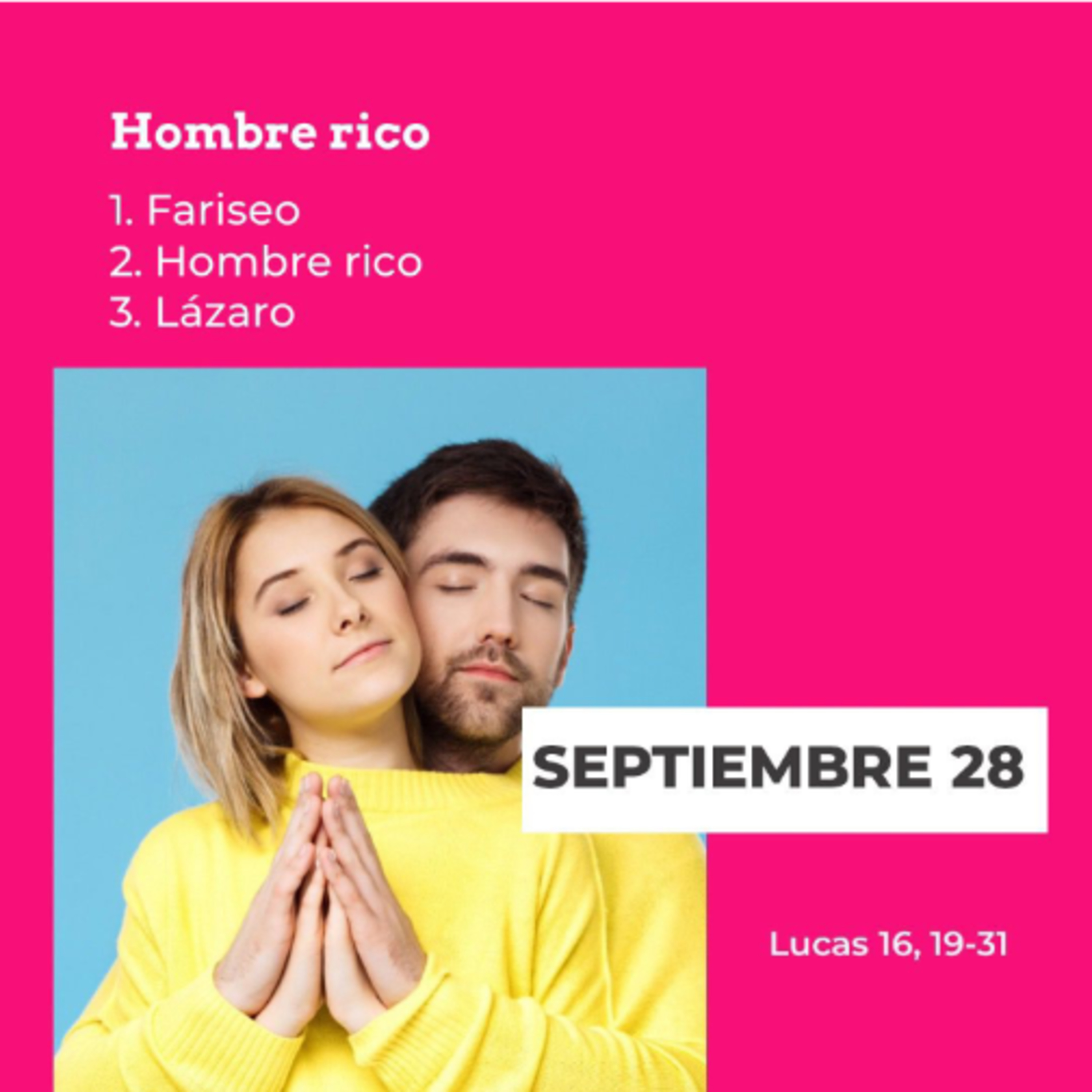 3) Lázaro: Por eso fíjate que tu vida no se termine en cuestiones materiales y no dejes que lo importante de tu vida se lo lleve el viento por no haber clavado bien tu sustento. El consuelo de tu vida no pasa por el celular que tengas o la ropa que te compres, la vida pasa por disfrutar cada día con la gente que te aporta y te hace mejor persona. Por tanto, no dejes que las riquezas de este mundo te hagan una persona pobre. Algo bueno está por venir.