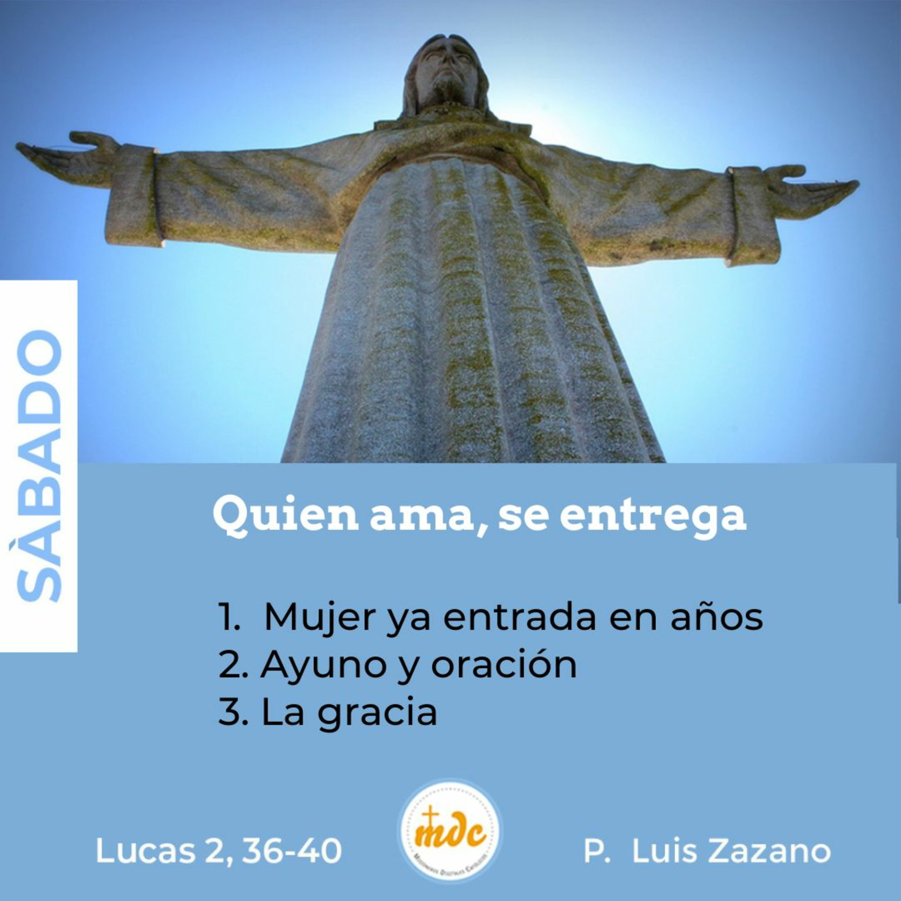 3) La gracia: Hoy vamos terminando un año y está bueno que te plantees en qué has crecido y qué objetivos cumpliste, como también pensar qué gracias recibiste. Hoy aprende a ser una persona nueva y comprende que la vida es marcada por las experiencias y las experiencias son las que marcan tu vida. Hoy crece en Cristo y asume tu vida desde Cristo. Algo bueno está por venir.