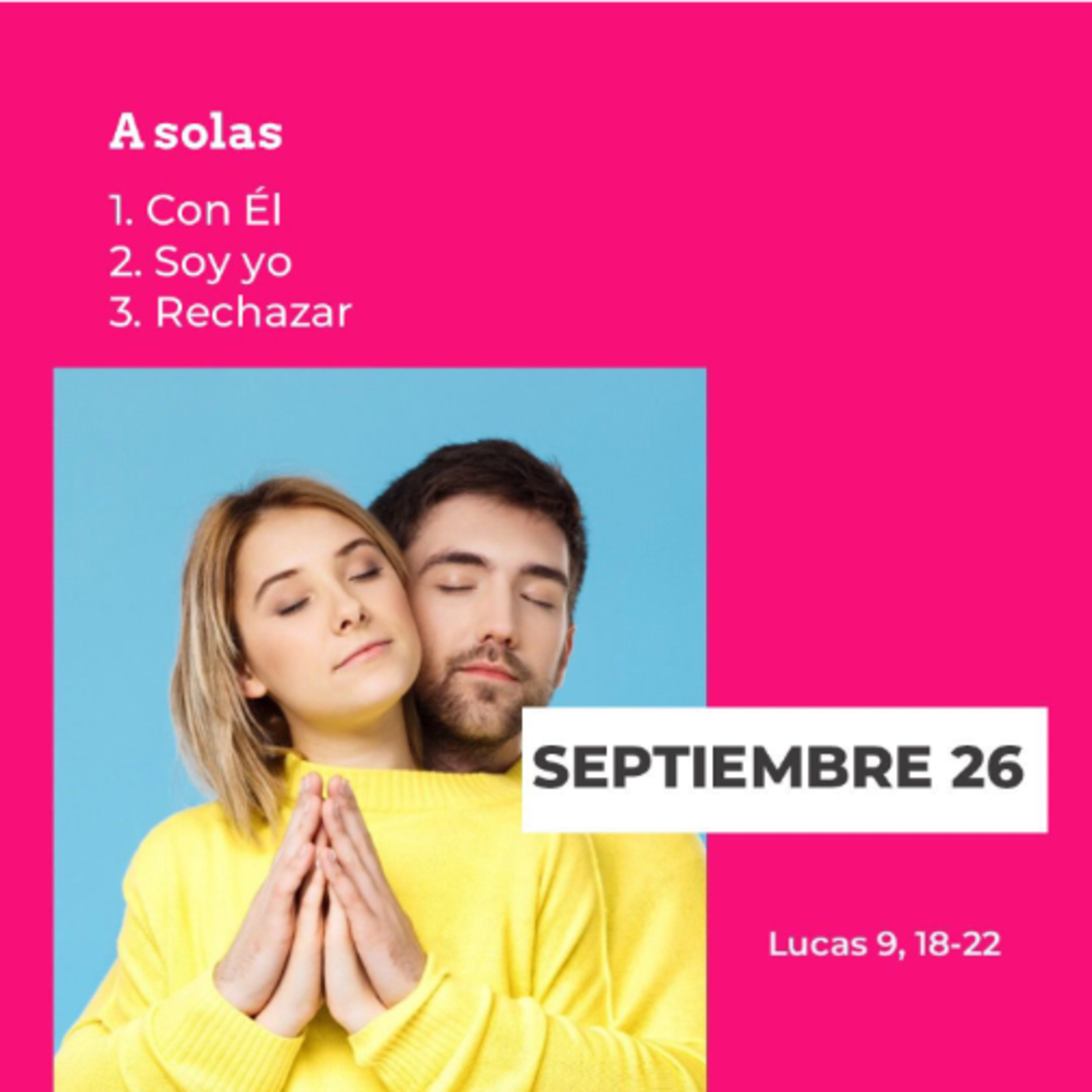 1) Con Él: Hay momentos en que estamos acompañados, pero hay veces que es necesario estar solo. Es la clave de tu vida, el aprender a estar solo y saber que tenés que buscar tu soledad, porque es necesaria para tu vivir. Hay veces que las personas que siempre están rodeadas están más solas que aquellos que saben vivir en soledad. Por eso, date la oportunidad de vivir tu momento con Cristo y comprender que lo necesitas a Él.