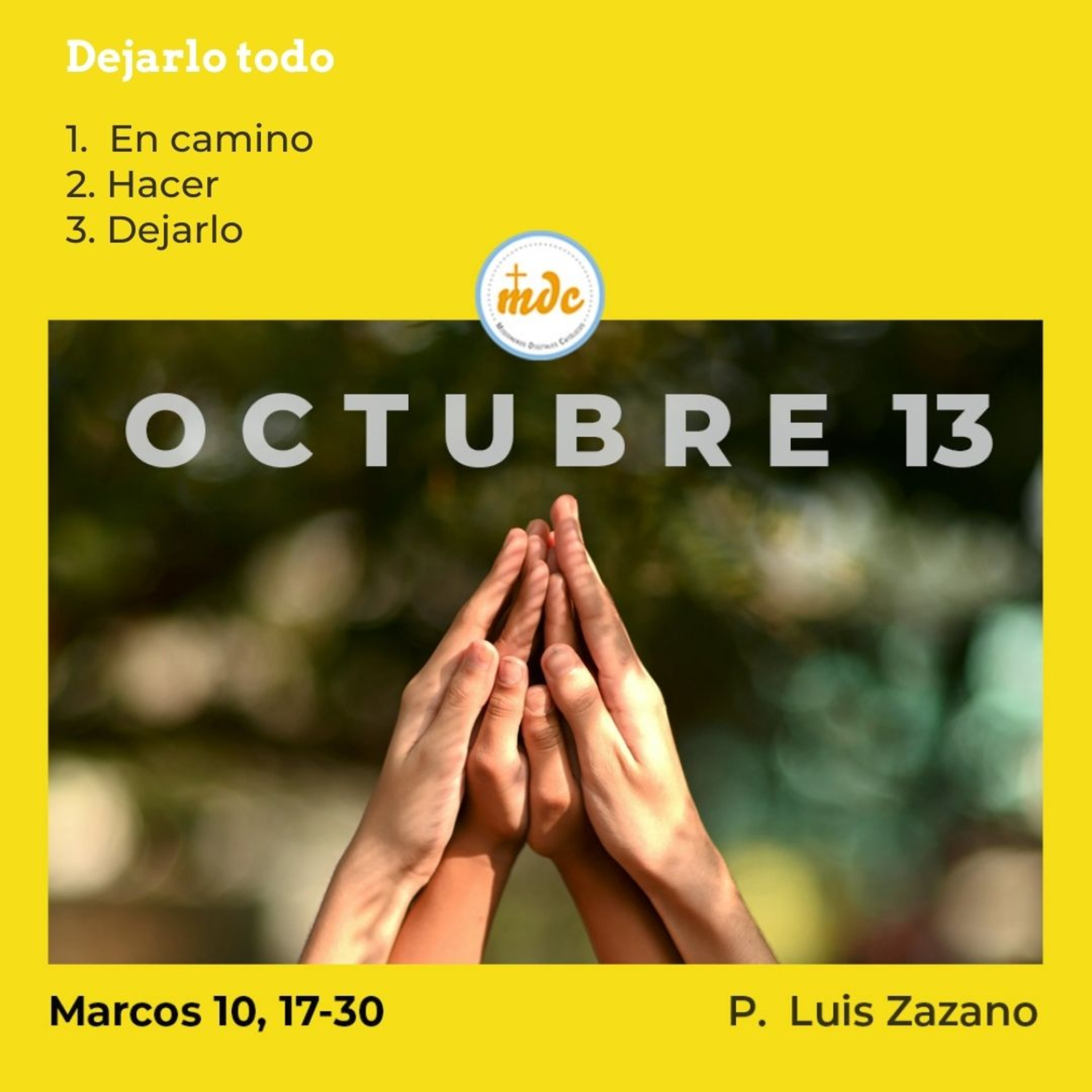 3) Dejarlo: Lo más difícil es soltar y dejar lo que te da seguridad. Siempre tenemos miedo a lo nuevo y a lo distinto, y somos capaces de aferrarnos a cosas incluso que nos hacen sufrir. Podemos llegar a tener riquezas que nos atan, riquezas que no son reducidas en lo material, porque hay personas que se atan a personas que creen que son su única riqueza. Por tanto, la clave es soltar para descubrir lo nuevo y lo nuevo se descubre soltando. Algo bueno está por venir.