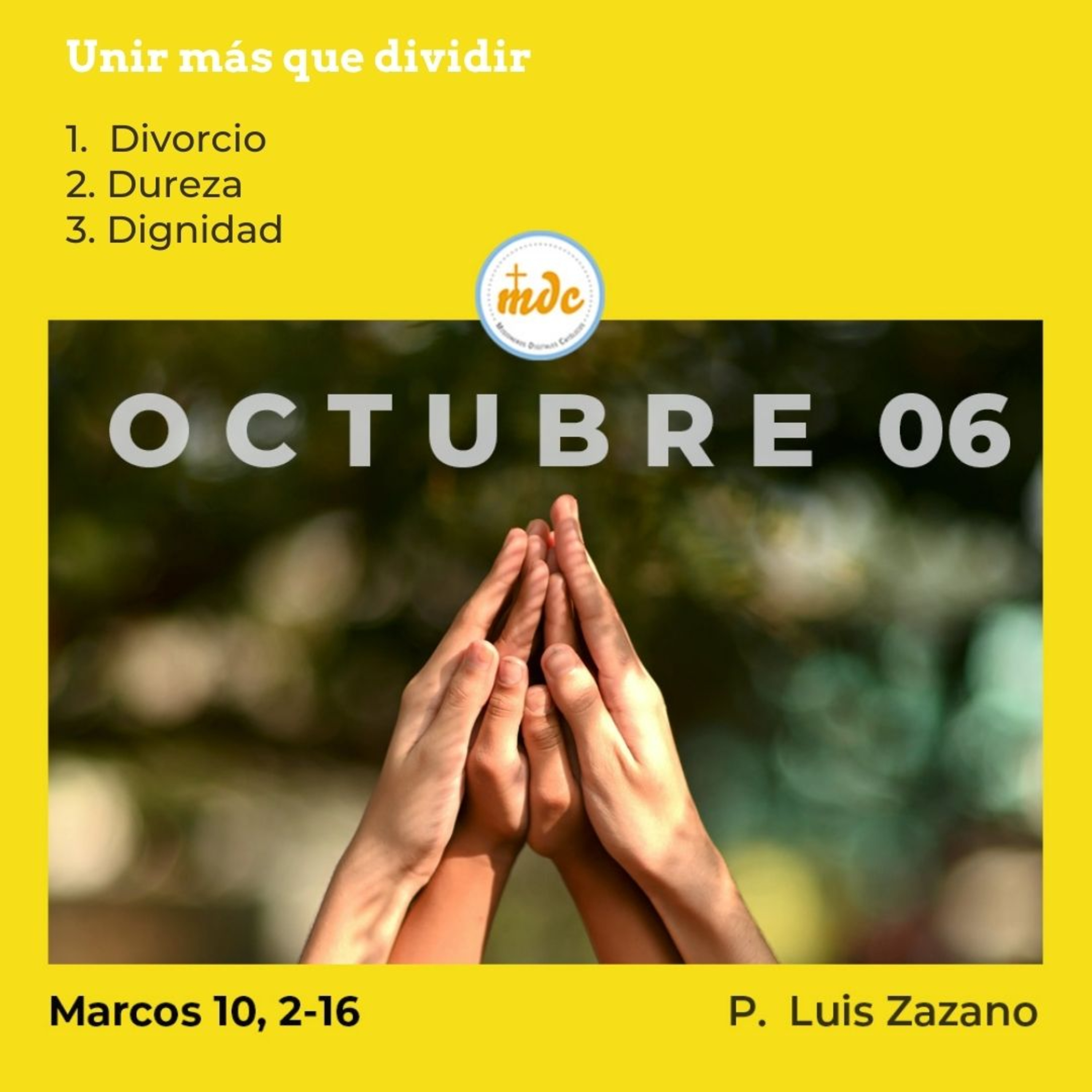 3) Dignidad: Aparece aquí en las palabras de Jesús la dignidad de la persona. Prima la dignidad ante toda relación, pues una relación nunca destruye una persona, sino más bien la eleva. Para elegir compartir la vida con alguien, debo elegir que me acepto como soy y me muestro como soy. Elegir ser casado o sacerdote o soltero es no desde el pensar qué me pasa a mí si elijo este estilo de vida, sino más bien es pensar qué nos pasa si elijo este estilo de vivir. La vida marca elecciones y las elecciones marcan tu vida. Algo bueno está por venir.
