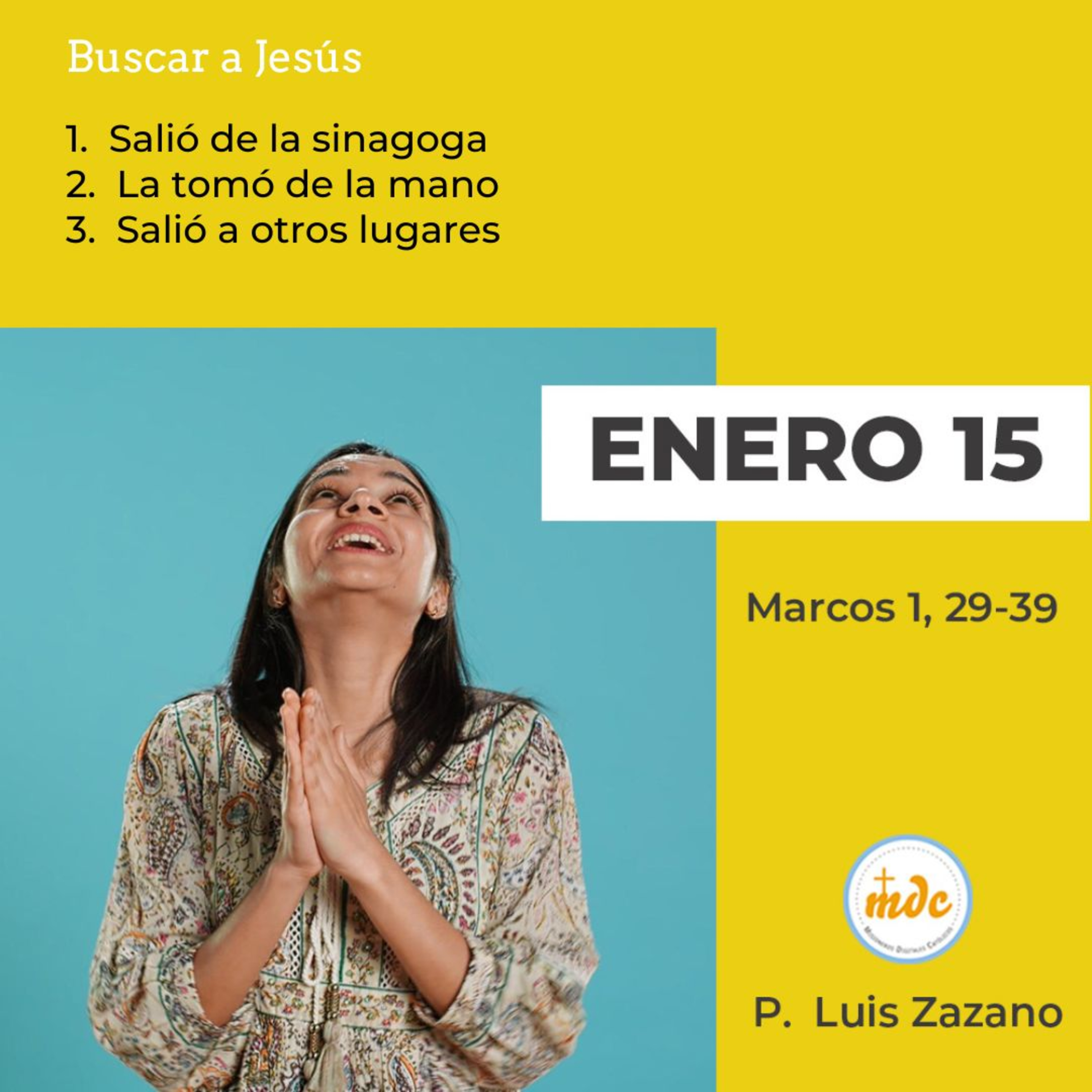 1) Salió de la sinagoga: La importancia de la oración en la vida de Jesús es el eje, lo central. No dejes nunca tu tiempo de orar, de acercarte a la capilla y estar un rato en silencio y oración. Busca tu espacio y tu momento. Allí está tu fuerza para todo lo que te toca enfrentar en el día. Allí está tu lugar y tu momento para encontrar respuestas a muchas de tus preguntas. La clave es el silencio.