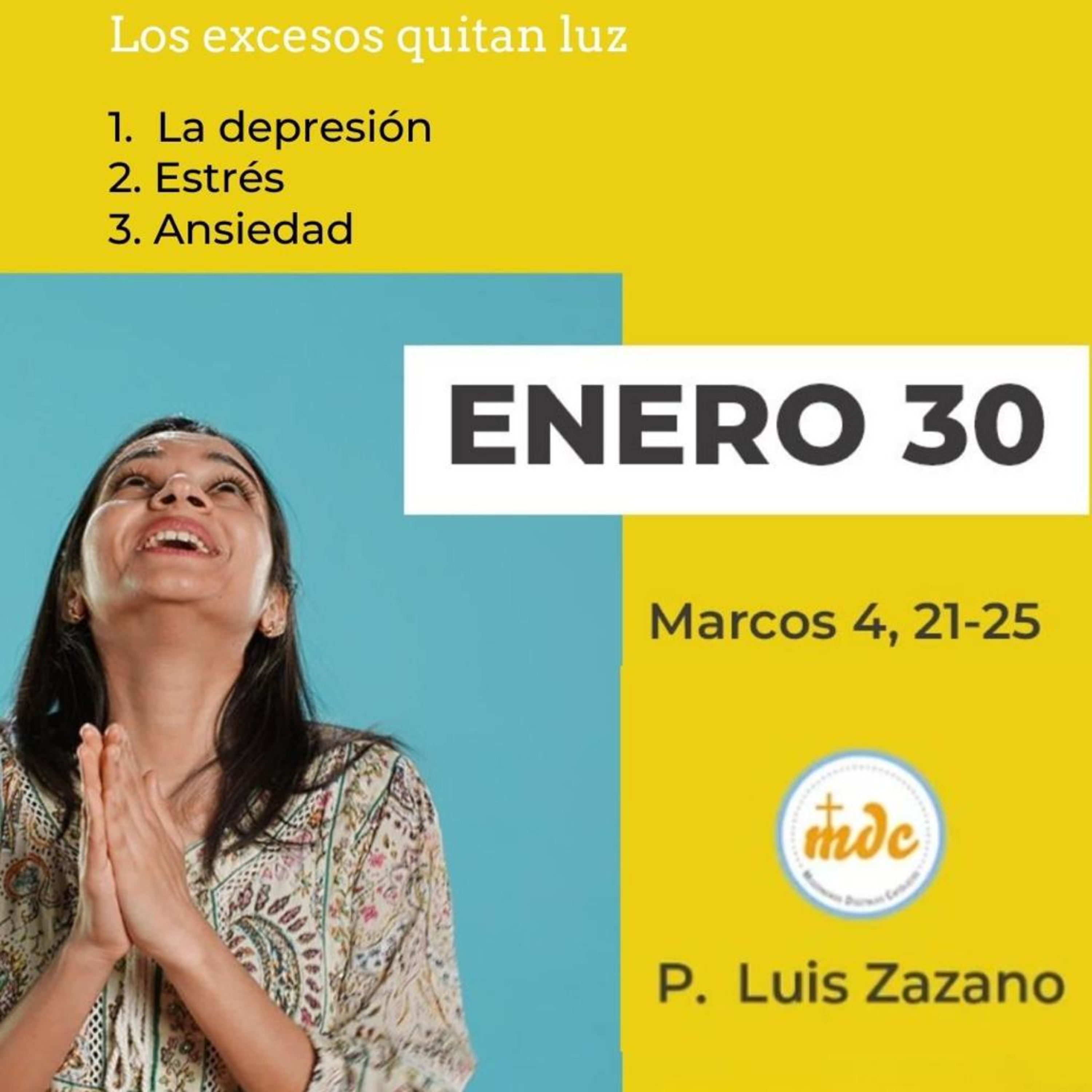 3) Ansiedad: Esto también quita tu luz, porque es un exceso hacia el futuro. Ya tu mirada está constante en el qué sucederá. Te toma el miedo porque no sabes si sale o no sale como lo planeaste. Te empezás a fantasear la cabeza, y tu misma cabeza se llena de fantasmas que lo único que logran es que vivas en una irrealidad, y hasta en sufrir por cosas que aún no son, y ni siquiera sabes si van a suceder. Eso te hace olvidar de tu gente y de disfrutar de la vida. No dejes que estos tres excesos tomen tu vida. Hacé como decía Madre Teresa: ”viviré mi vida como si fuera mi primer día, mi último día y mi único día”. Hoy vos podés dar mucha luz, te lo aseguro, pero aprende a no excederte ni ne el pasado, ni en el presente, ni en el futuro. Algo bueno está por venir.