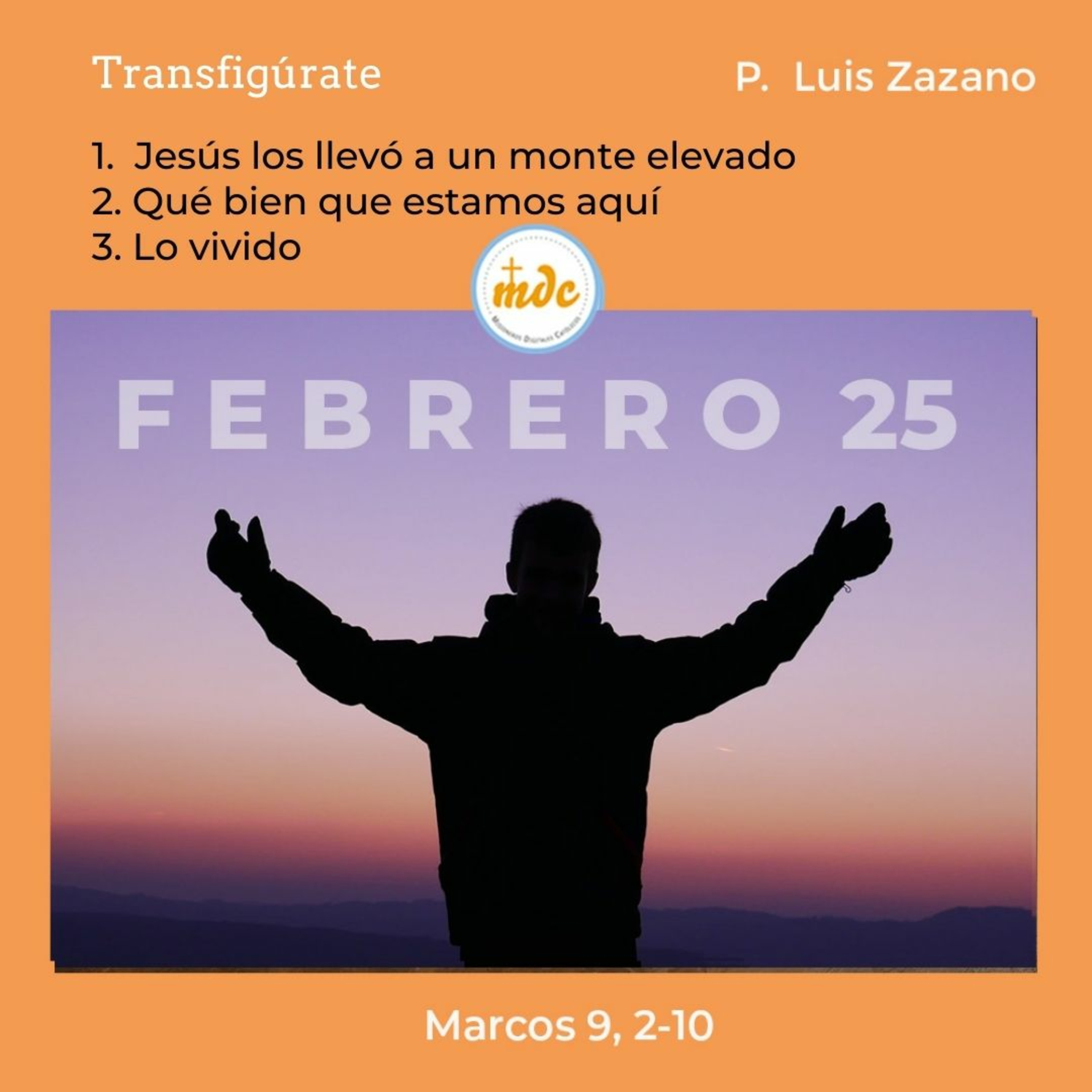 1) Jesús los llevó a un monte elevado: Es aquí donde vemos que aquel cristiano que desea comprometerse en la vida cristiana vivirá un proceso espiritual. Es esa gracia que te toca vivir después de la experiencia de un retiro, de una misa o de una adoración. Es la situación en donde sentís un gran gozo en la vida espiritual que incluso a algunos los impulsa a más y más. Cautela, es una experiencia hermosa. Sí, estáa en lo alto y te sentís bien y cómodo en ello; pero debo aclararte que es una etapa. Es en esta etapa en donde hasta te sugiero que lo escribas, porque son experiencias fuertes y lindas, pero es bueno recordarlas y tenerlas presente para que, cuando vengan esos momentos de sequía y en donde no estes en lo alto, puedas recordar que verdaderamente Jesús te llevó a lo alto.