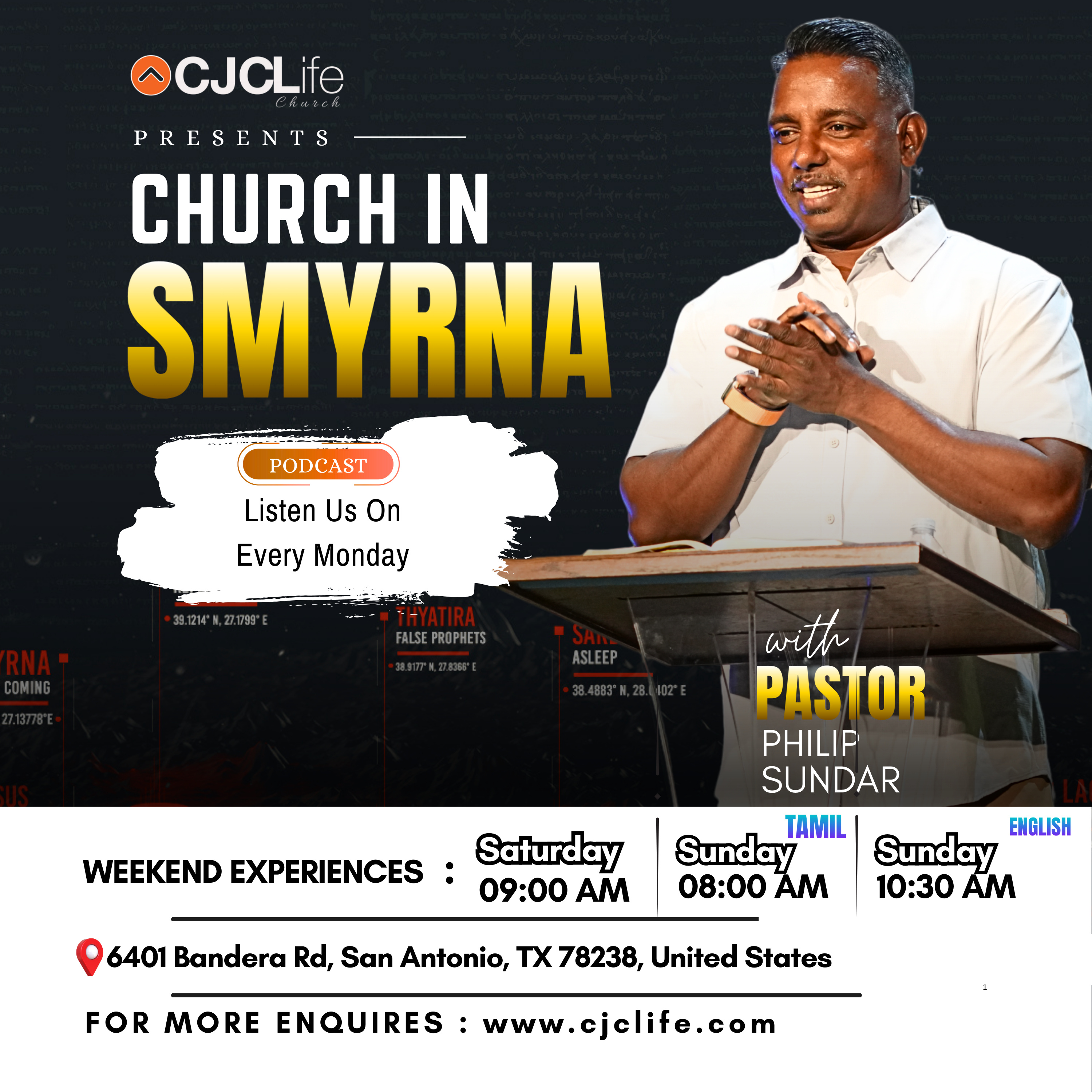 This week, Pastor Philip Sundar delivers a powerful message on the Church in Smyrna, one of the seven churches in Revelation. Smyrna, the suffering yet faithful church, reminds us that even in the midst of trials, God sees our faith and promises an eternal reward.