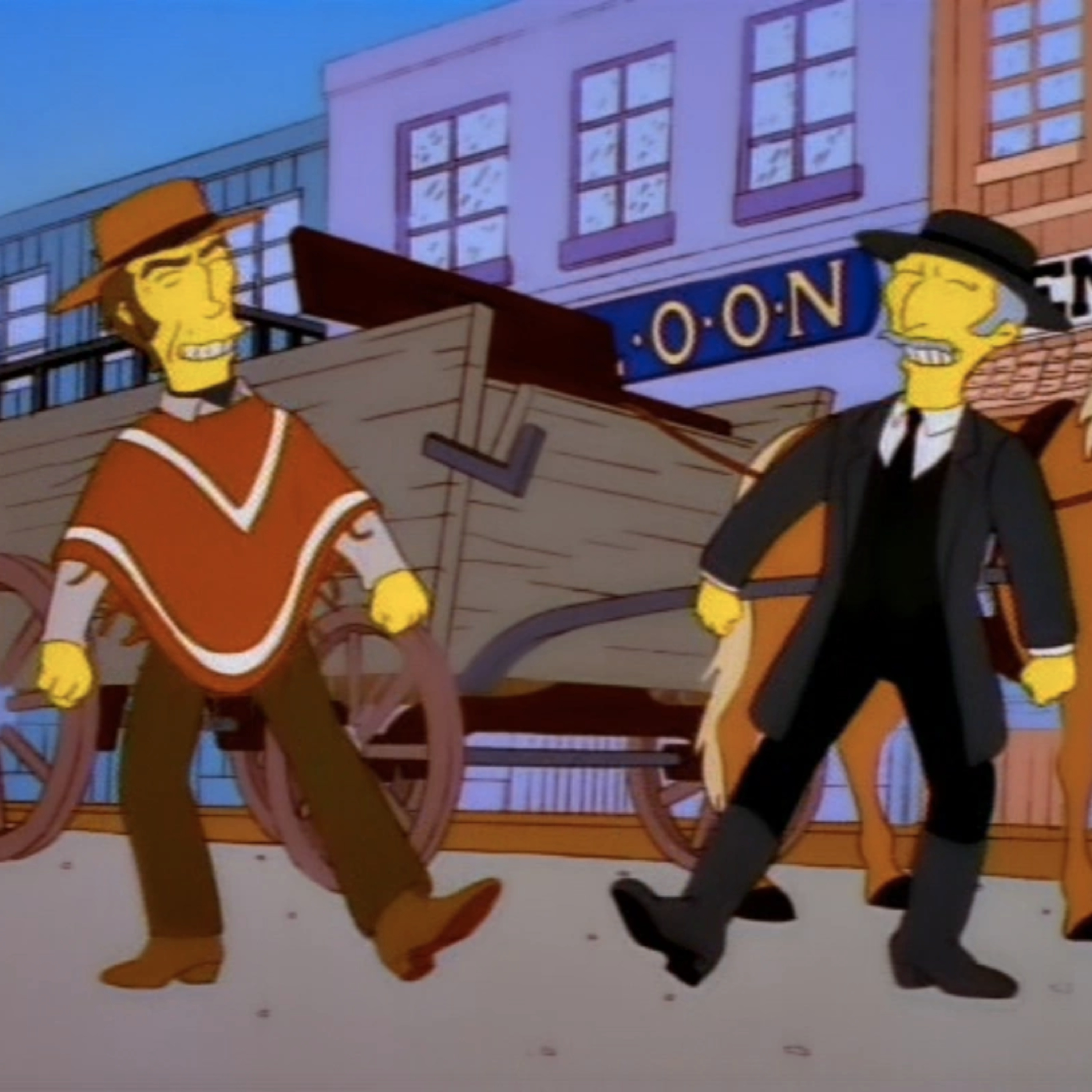 Marge and Lisa try to soften Homer's mood after he inadvertently rents a musical instead of an action movie.