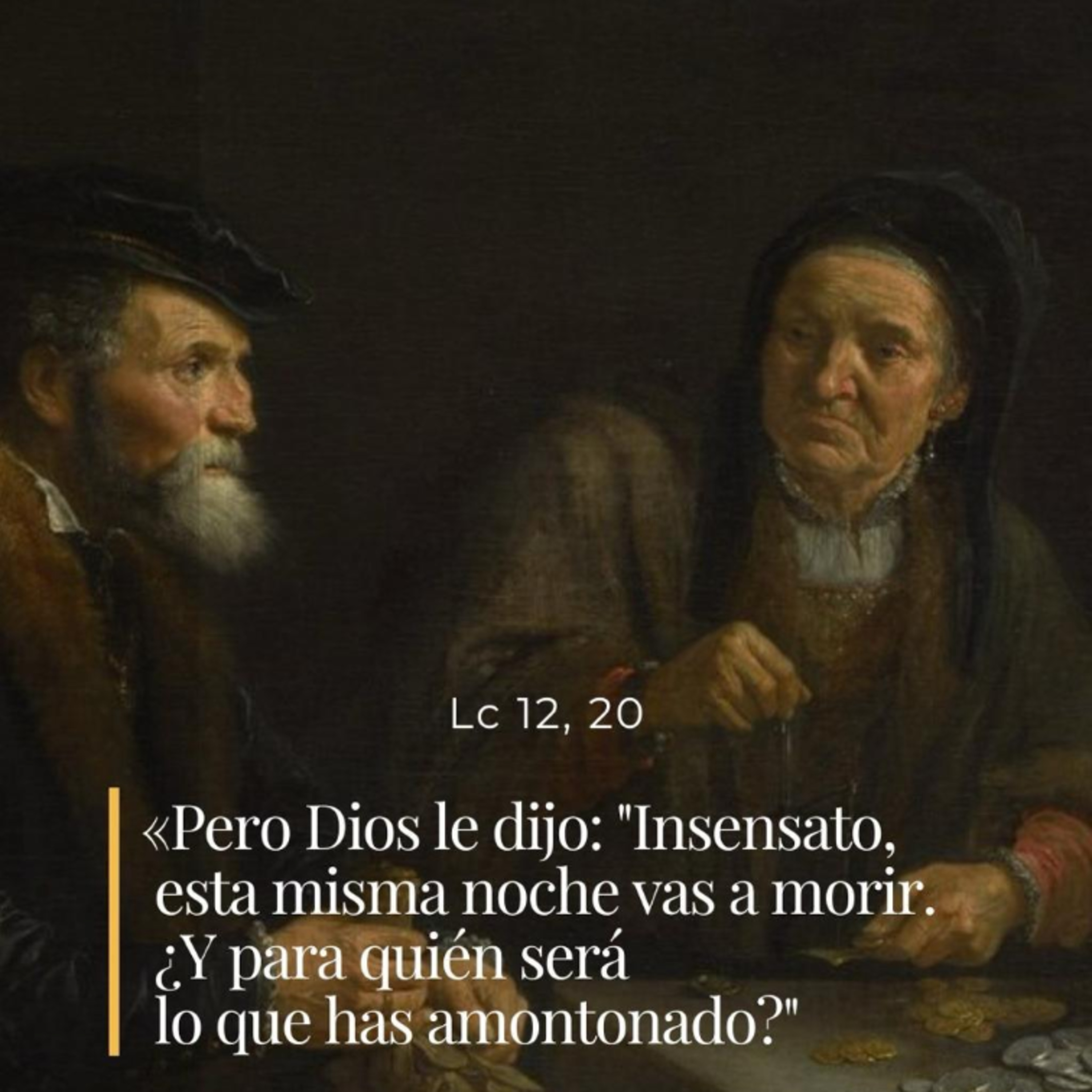 Pero Dios le dijo: "Insensato, esta misma noche vas a morir. ¿Y para quién será lo que has amontonado?"