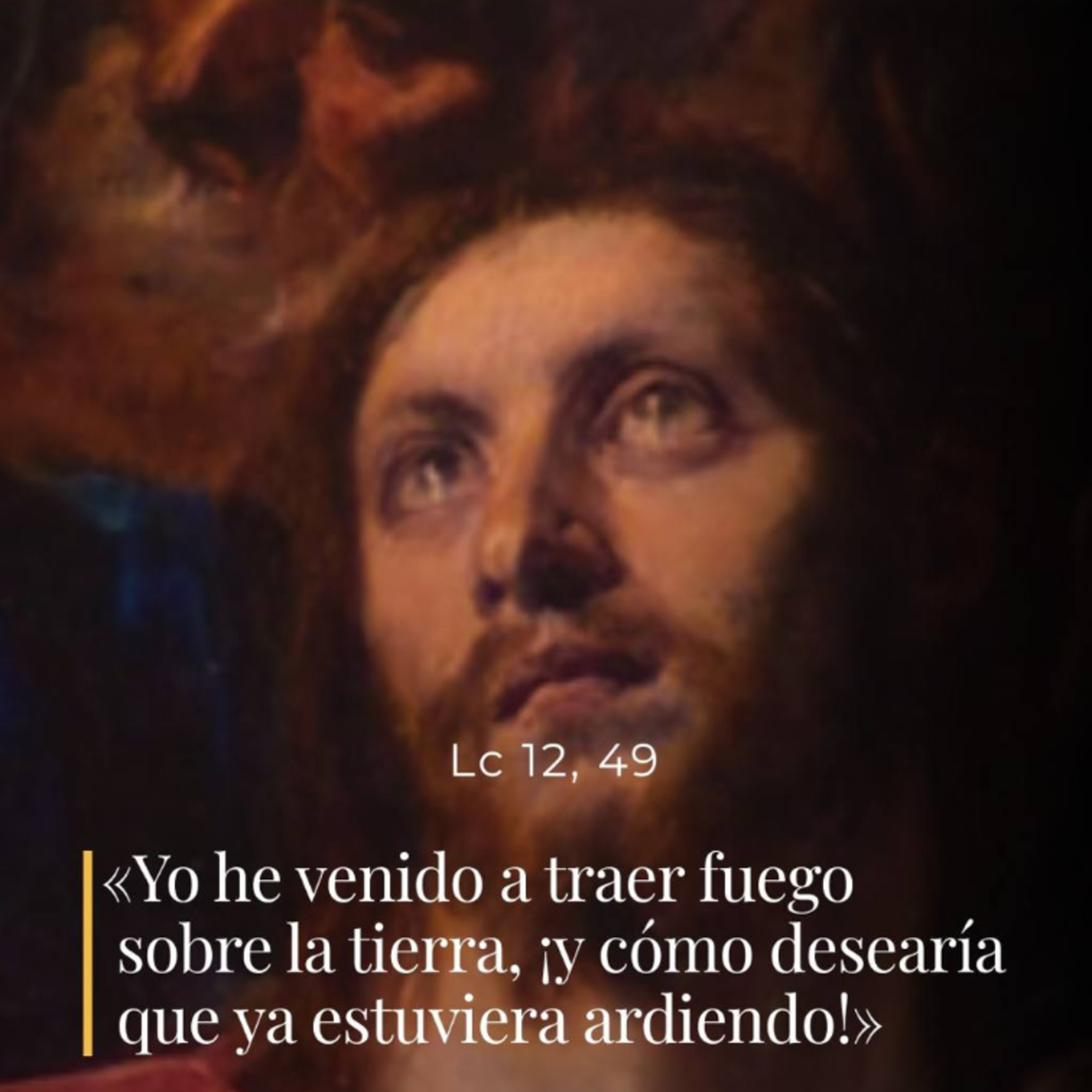 «Yo he venido a traer fuego sobre la tierra, ¡y cómo desearía que ya estuviera ardiendo! Tengo que recibir un bautismo, ¡y qué angustia siento hasta que esto se cumpla plenamente!