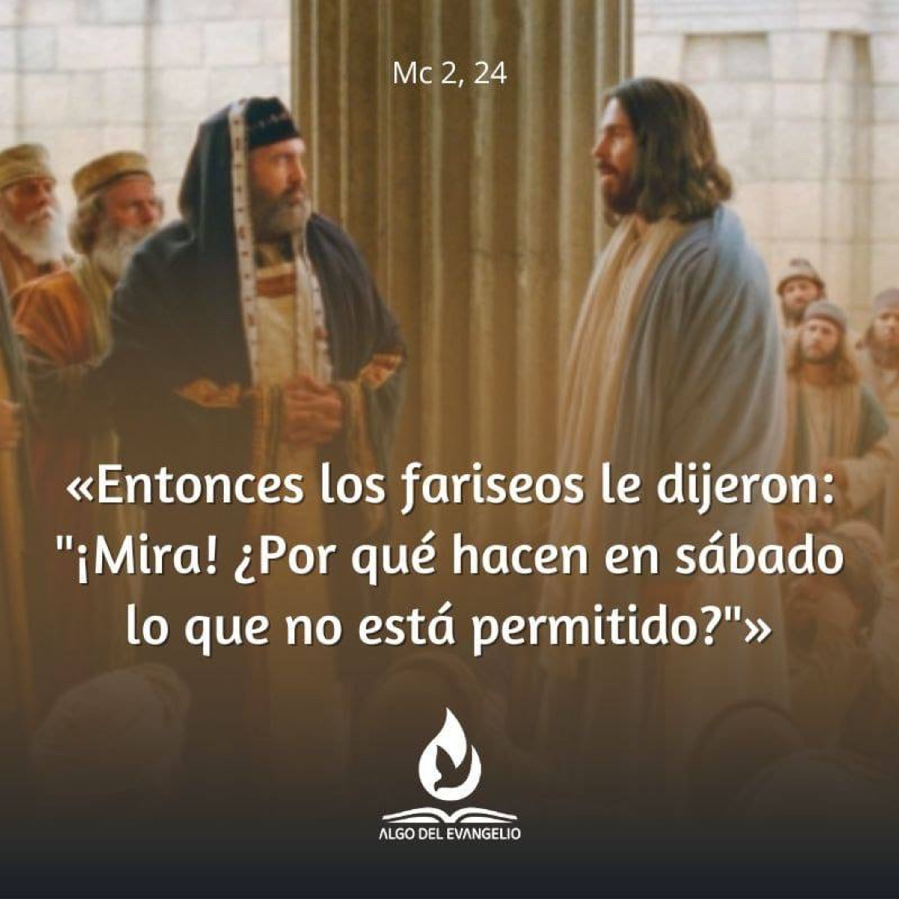 Un sábado en que Jesús atravesaba unos sembrados, sus discípulos comenzaron a arrancar espigas al pasar. Entonces los fariseos le dijeron: «¡Mira! ¿Por qué hacen en sábado lo que no está permitido?»