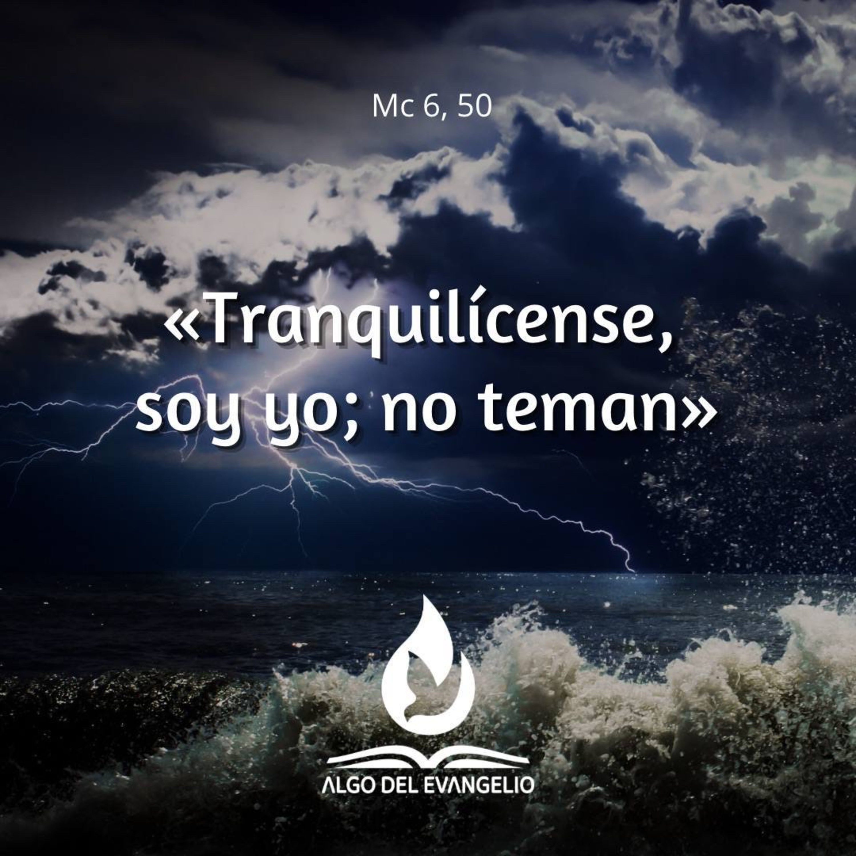 Ellos, al verlo caminar sobre el mar, pensaron que era un fantasma y se pusieron a gritar, porque todos lo habían visto y estaban sobresaltados. Pero él les habló enseguida y les dijo: «Tranquilícense, soy yo; no teman.» Luego subió a la barca con ellos y el viento se calmó.