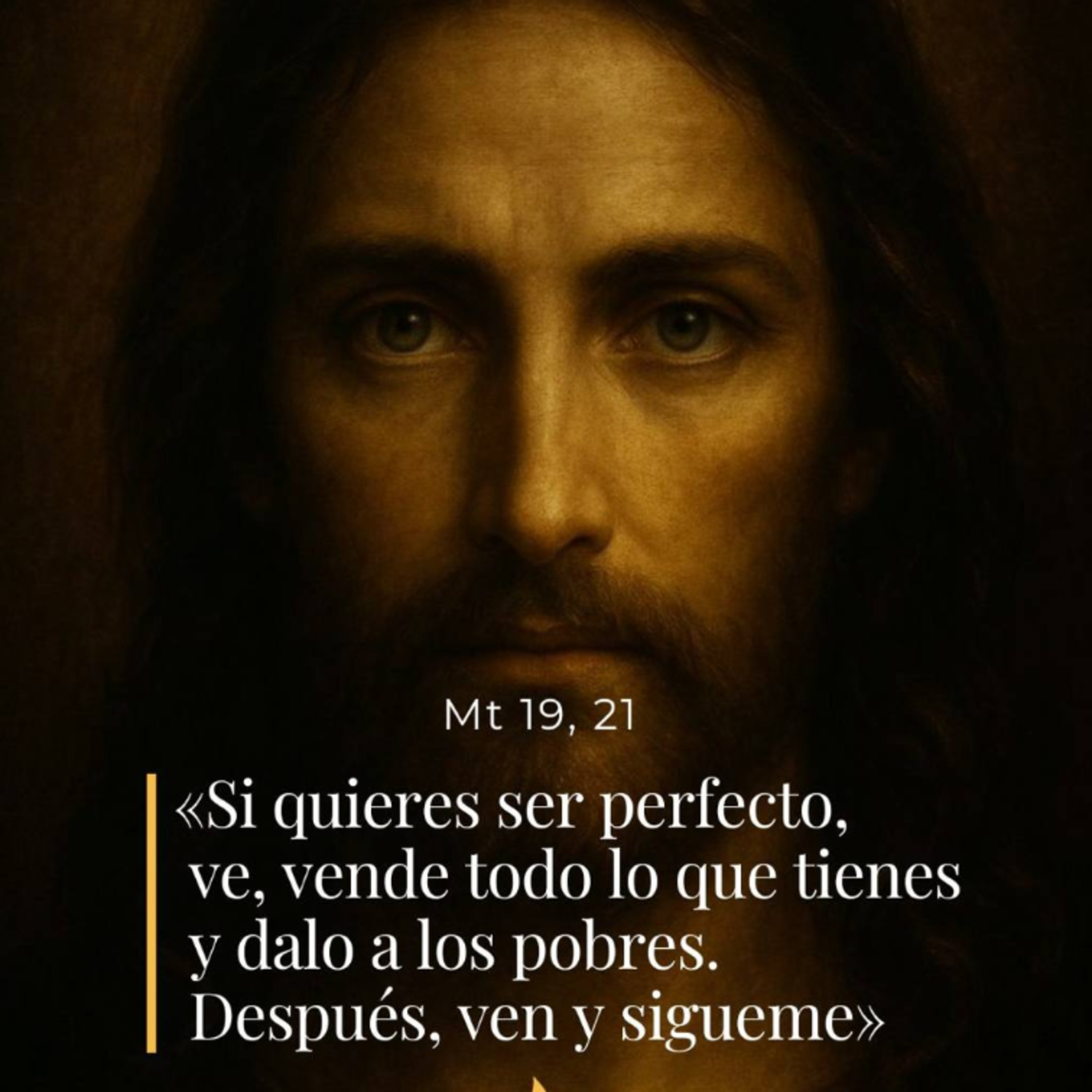 El joven dijo: «Todo esto lo he cumplido: ¿qué me queda por hacer?» «Si quieres ser perfecto, le dijo Jesús ve, vende todo lo que tienes y dalo a los pobres: así tendrás un tesoro en el cielo. Después, ven y sígueme.»