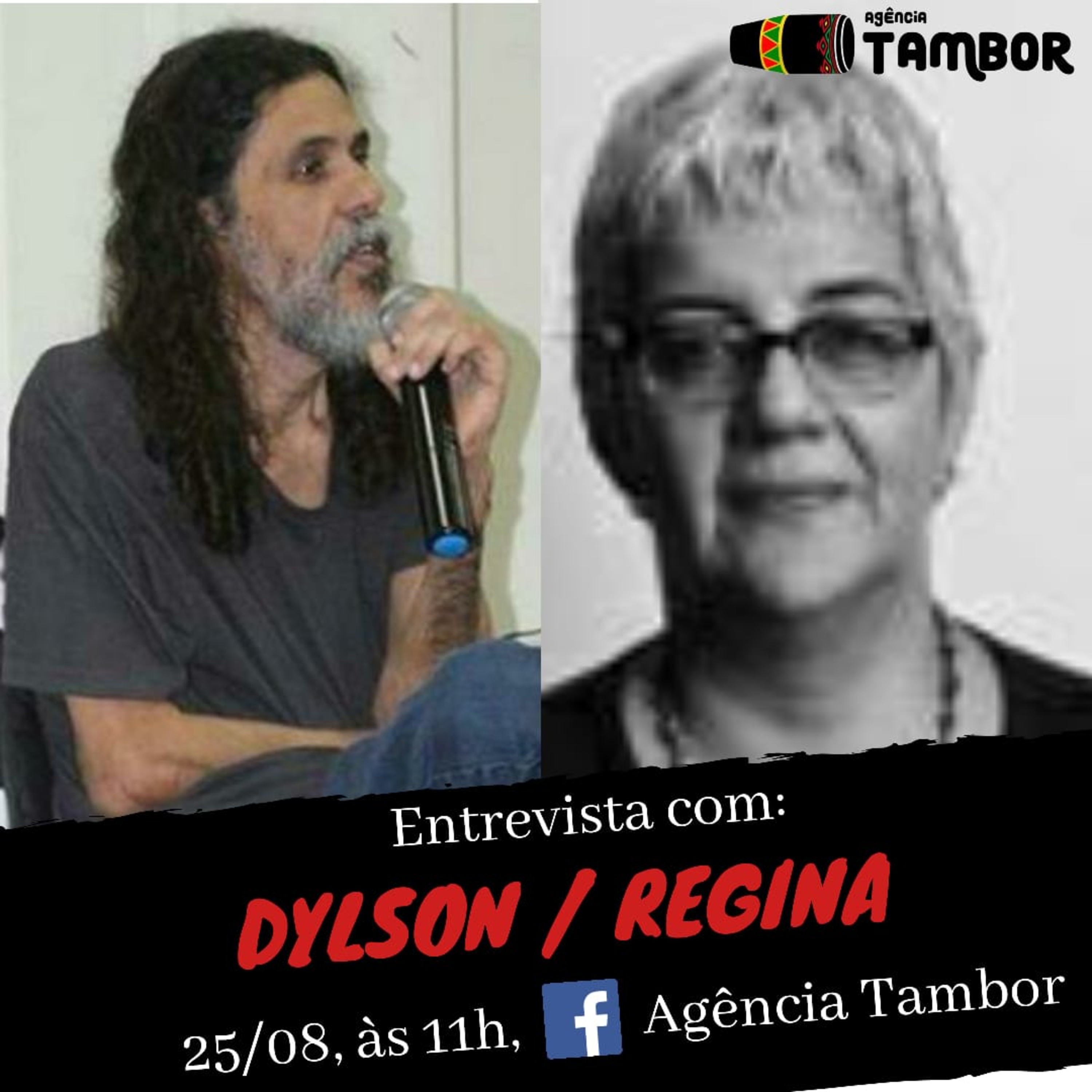 A entrevista desta terça-feira (25/08), no Radiojornal Tambor, que será transmitido via Facebook (AgenciaTambor), às 11h, será com Dylson Bessa e Regina Atalla.