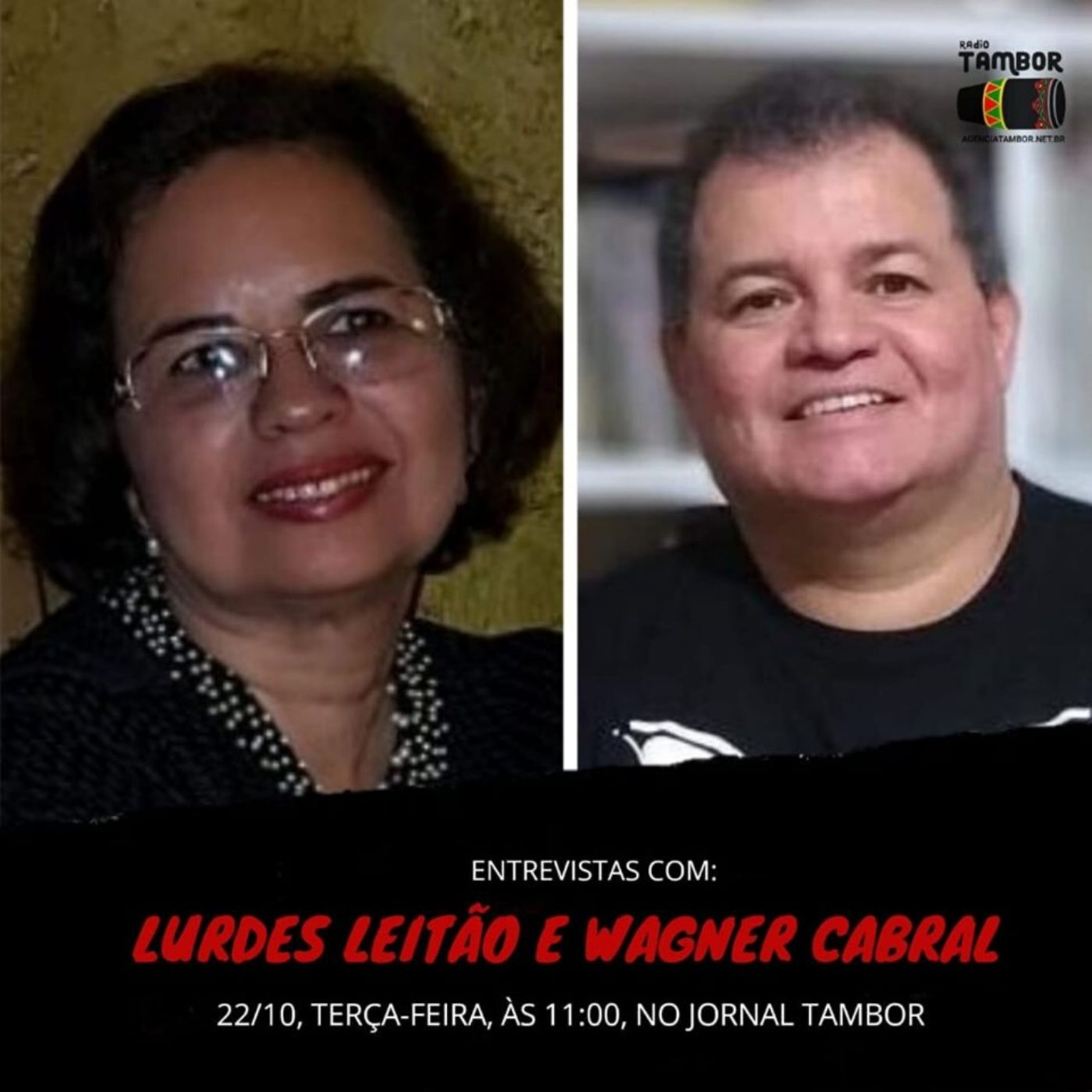 A entrevista desta terça-feira (22/10), no Radiojornal Tambor, será com Lourdes Leitão e Wagner Cabral.
