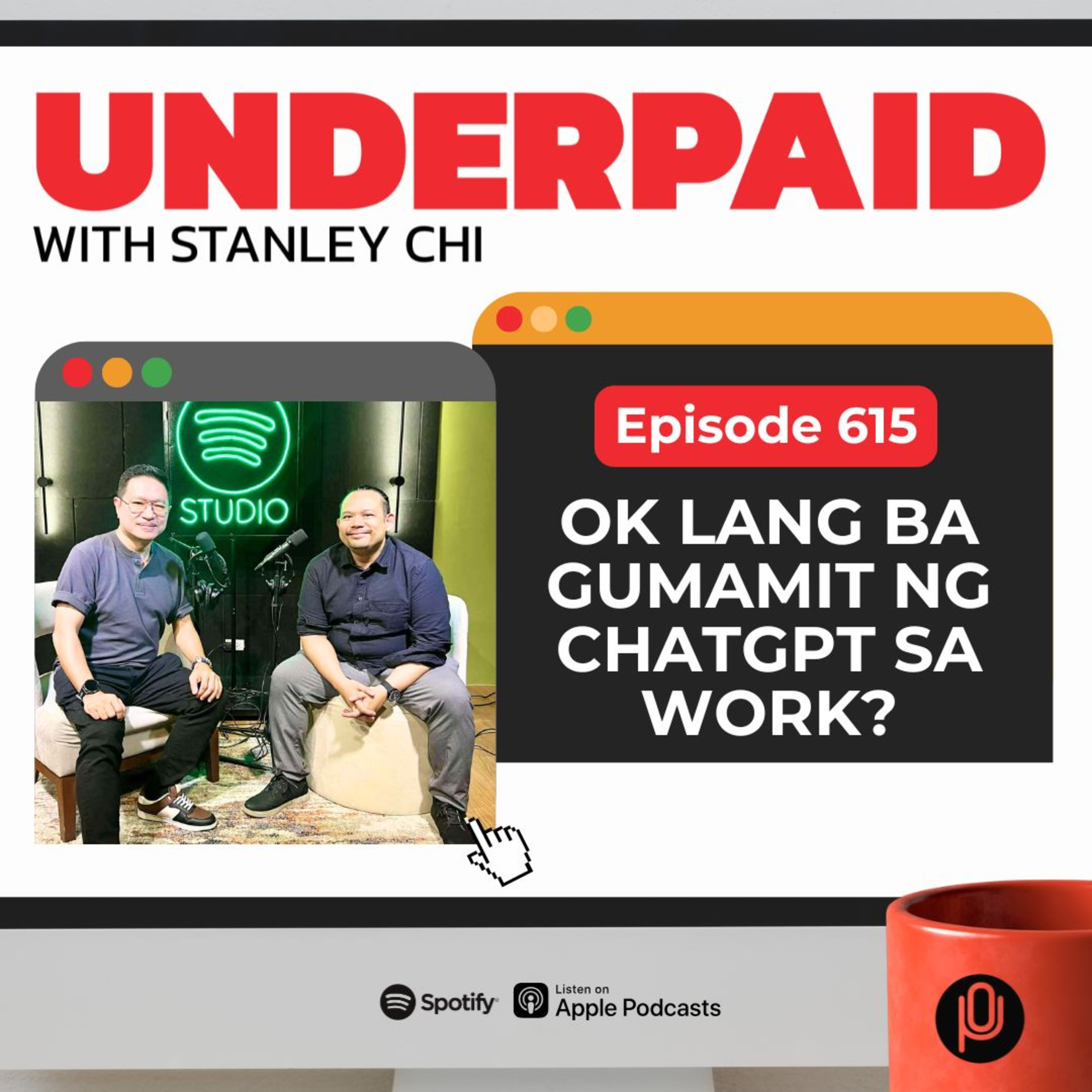 In this episode, Carljoe Javier joins us to talk about using AI or ChatGPT at work. Subscribe to Underpaid, join our Discord, and FB Group,Team Suplado Discord grouphttps://discord.gg/WjhgJSRfANUnderpaid podcast FB grouphttps://www.facebook.com/groups/1330205921240849/Suplado Motors:FB, Tiktok, IG & Youtube: @supladomotorsStanley Chi:FB: @stanleychifanpageTiktok: @_stanleychiInstagram & Youtube: @stanleychiFor the video podcast subscribe to TPN’s YT channel:www.youtube.com/ThePodNetworkEntertainment