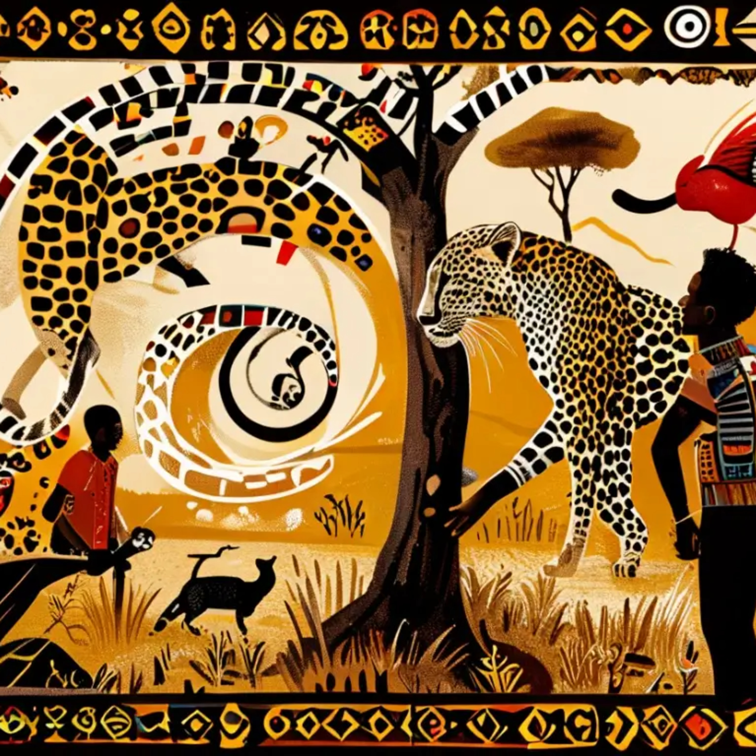 In this Nigerian folktale from Calabar, we meet Effiong, a once-prosperous hunter who squandered all his wealth on feasting and extravagance. When his fortune turned, Effiong borrowed money not only from his human friend Okun but also from a leopard, a bush cat, a goat, and a rooster, promising to repay them—or let them eat whatever they found in his compound if he was absent.
