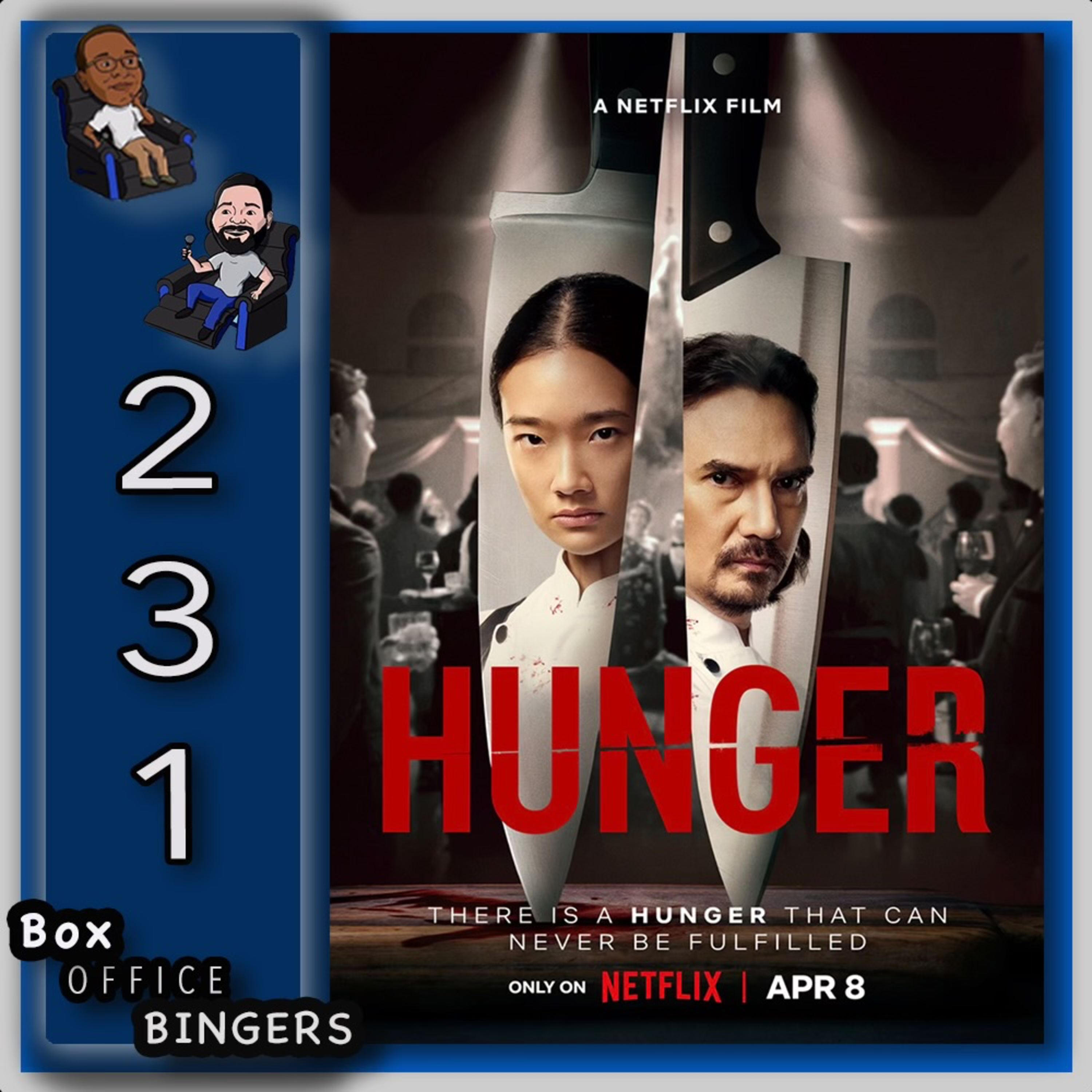 Join hosts Matt Diaz and Ernesto Santos as we discuss the latest entertainment news including James Wan directing a Creature from the Black Lagoon remake, Jack Black and Paul Rudd starring in a comedic reimagining of Anaconda and James Spader returning as Ultron in the upcoming Vision series. We’ll then chit-chat about our recently watched movies and tv shows in a fun segment we like to call “Whatcha Watchin’” including our thoughts on The Umbrella Academy S4 & the CatVideoFest. And later, we’ll give you our SPOILER REVIEW of our Foreign Film of the Month, the 2023 Thailand Netflix film, Hunger.