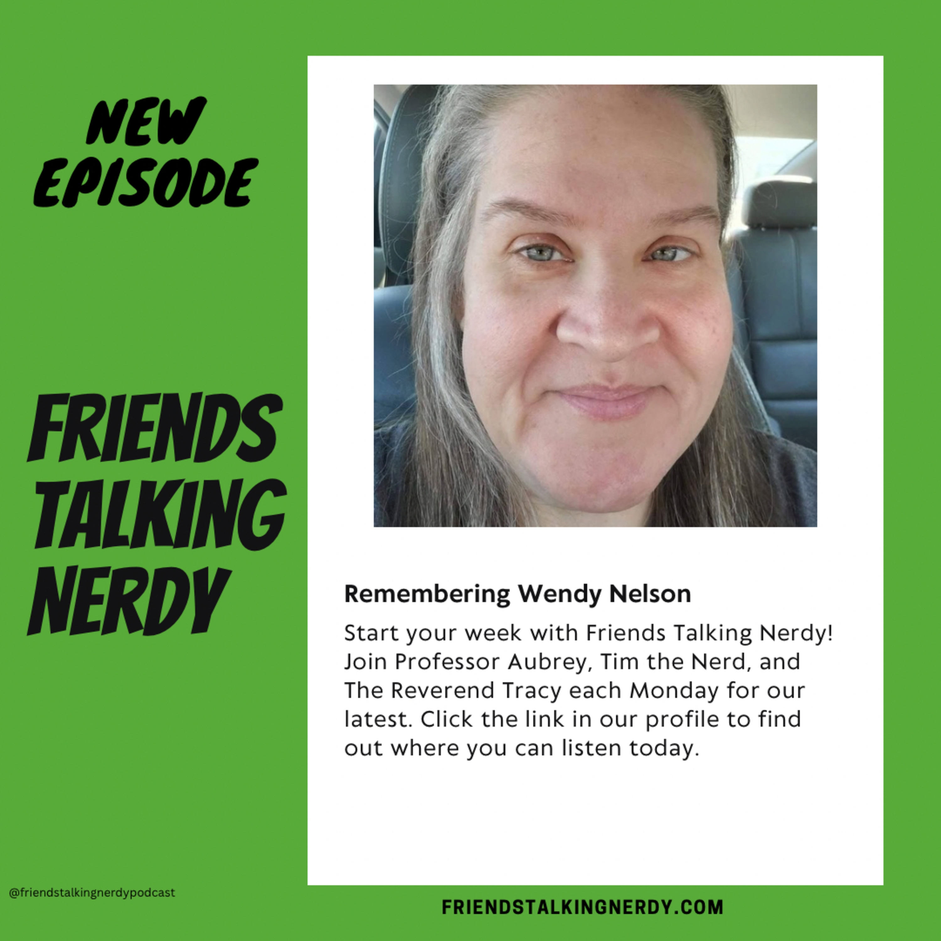 In this heartfelt bonus episode of Friends Talking Nerdy, The Reverend Tracy and Tim the Nerd take a moment to honor the memory of Wendy Nelson, a beloved friend of the show, who recently passed away. The episode begins with a moving tribute from The Reverend Tracy, who reflects on Wendy’s kindness and creativity. Her thoughtful insights, warm spirit, and deep love for storytelling touched everyone she interacted with—both on and off the mic.