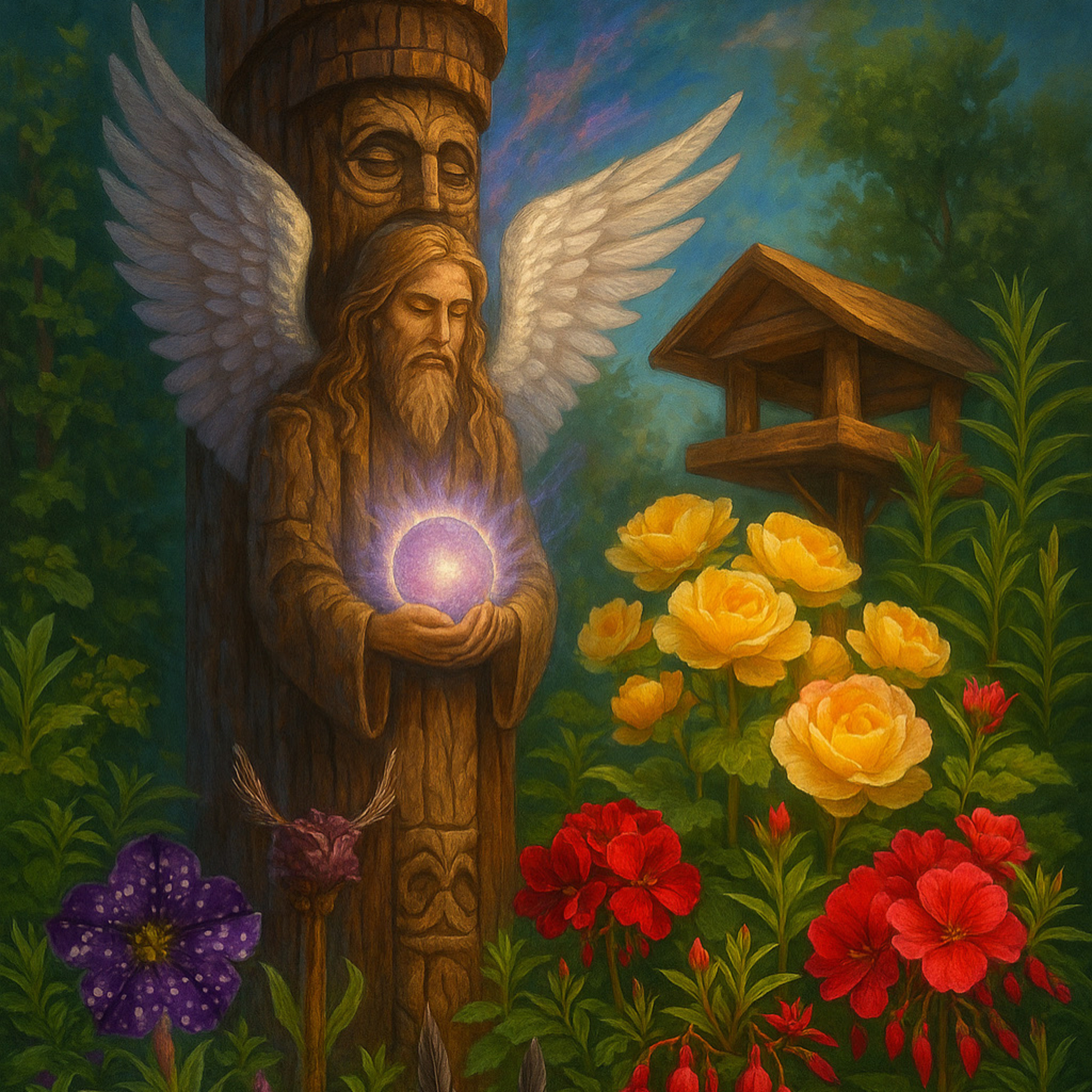 در همان لحظه، گل خشکی با دو پرِ نامرئی شبیه شاخ یا پرهای ستون توتم نمایان شد.