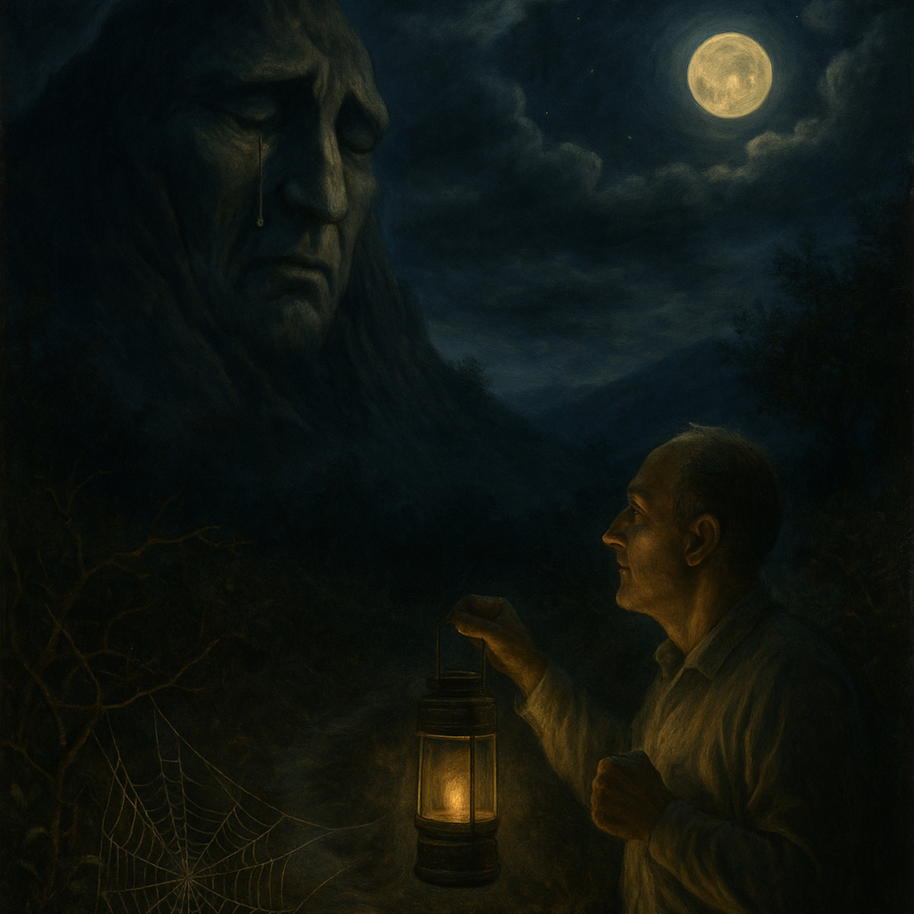 این متن ادبی، که در آلمان و در آیندهای نزدیک اتفاق میافتد، داستان رویارویی یک مسافر شب با کوهی کهن و آسیبدیده را روایت میکند. کوه، نمادی از عظمت زخمی و تجربه، پس از یک زلزله و سونامی، در حال بازتعریف معنای قدرت است. مسافر، با فانوسی دو رنگ (زرد و سفید) و رویکردی متفاوت، به جای غلبه بر موانع، با احترام از تار عنکبوت عبور میکند. این عمل، نقطهی عطفی است که فانوس او را به نوری دوگانه تبدیل میکند، نشانهای از تلفیق نور زمین و آسمان و نمادی از رویکرد او به زندگی. گفتگوی بین کوه و مسافر، بر تم اصلی متن یعنی "بزرگی در پذیرش زخمها و احترام به موانع به جای غلبه بر آنها" تاکید میکند. کوه درمییابد که عظمت واقعی، نه در شکستناپذیری، بلکه در پذیرش آسیبهاست، و مسافر نیز با این فلسفه، راه بازگشت به خانهاش را روشن میکند، درسی که تار عنکبوت نه با شمشیر، بلکه با احترام گشوده شد.
