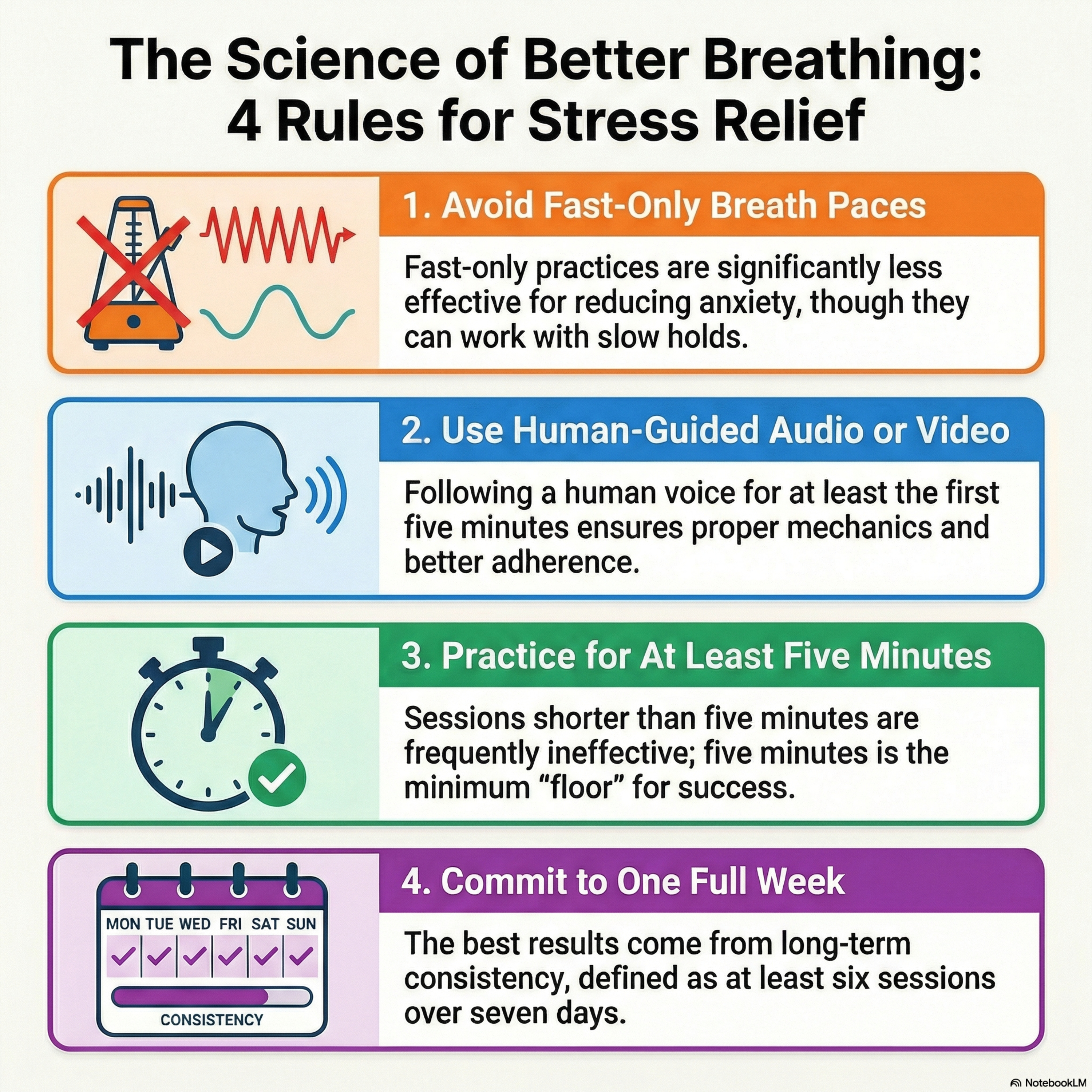 The Mechanical Lever (Breathwork): A massive systematic review of nearly 3,000 articles reveals why most people fail at breathwork. Learn the "5-minute rule," the danger of fast breathing, and why a guided approach is statistically more effective than going it alone.