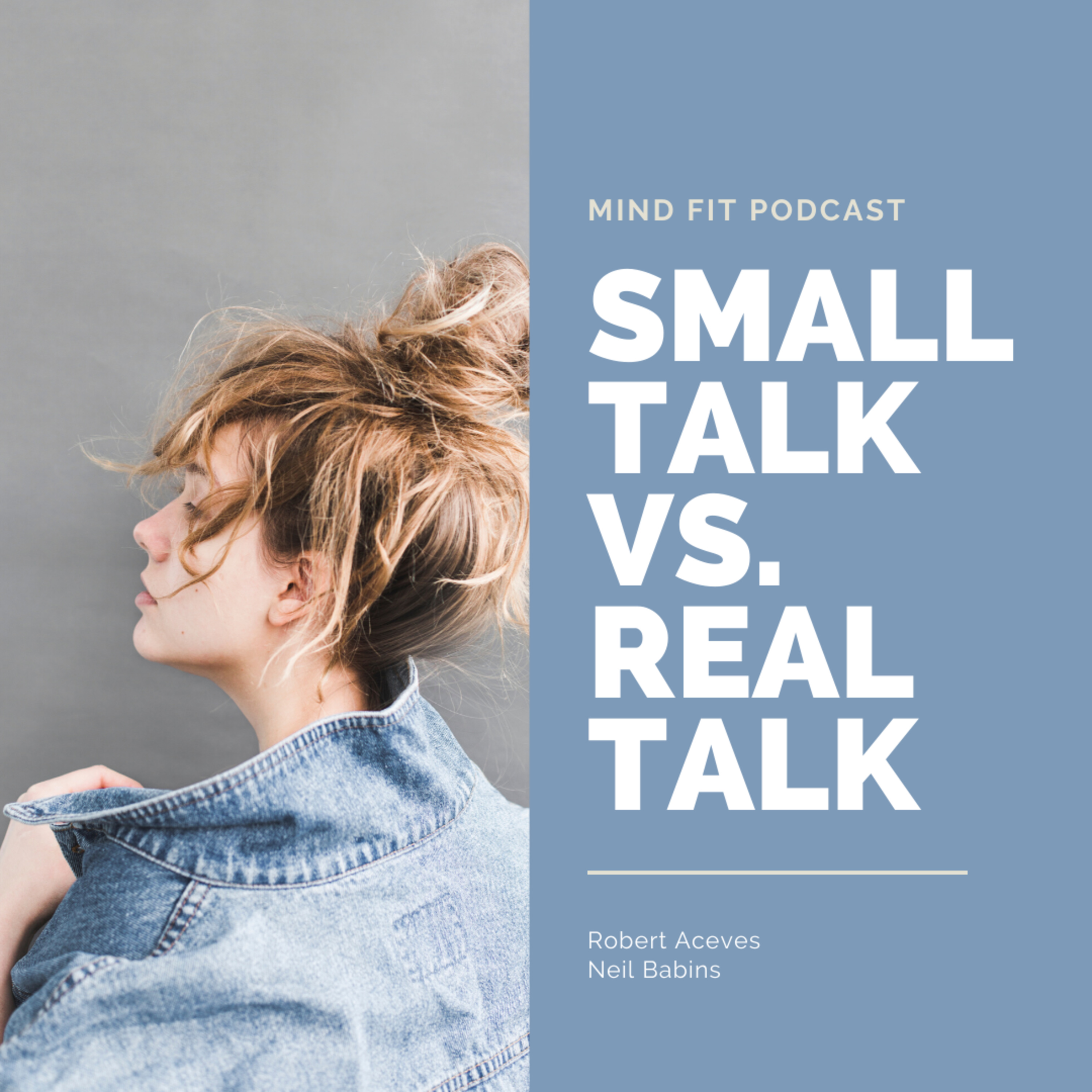 Mind Fit Podcast 6, Small Talk Vs. Real Talk with Robert Aceves and Neil Babins. On this 6th episode they talk about the difference between small talk and real talk. This podcast also talks about true communication, rapport and learning how to stay connected and form real connections with others to create long lasting relationships. Small Talk Vs. Real Talk explains small talk and what real communication is, and what the difference is between the two. In this podcast Small Talk Vs. Real Talk, you will learn how to connect better with your piers at work or at a party, and how to make friends and learn to communicate better.