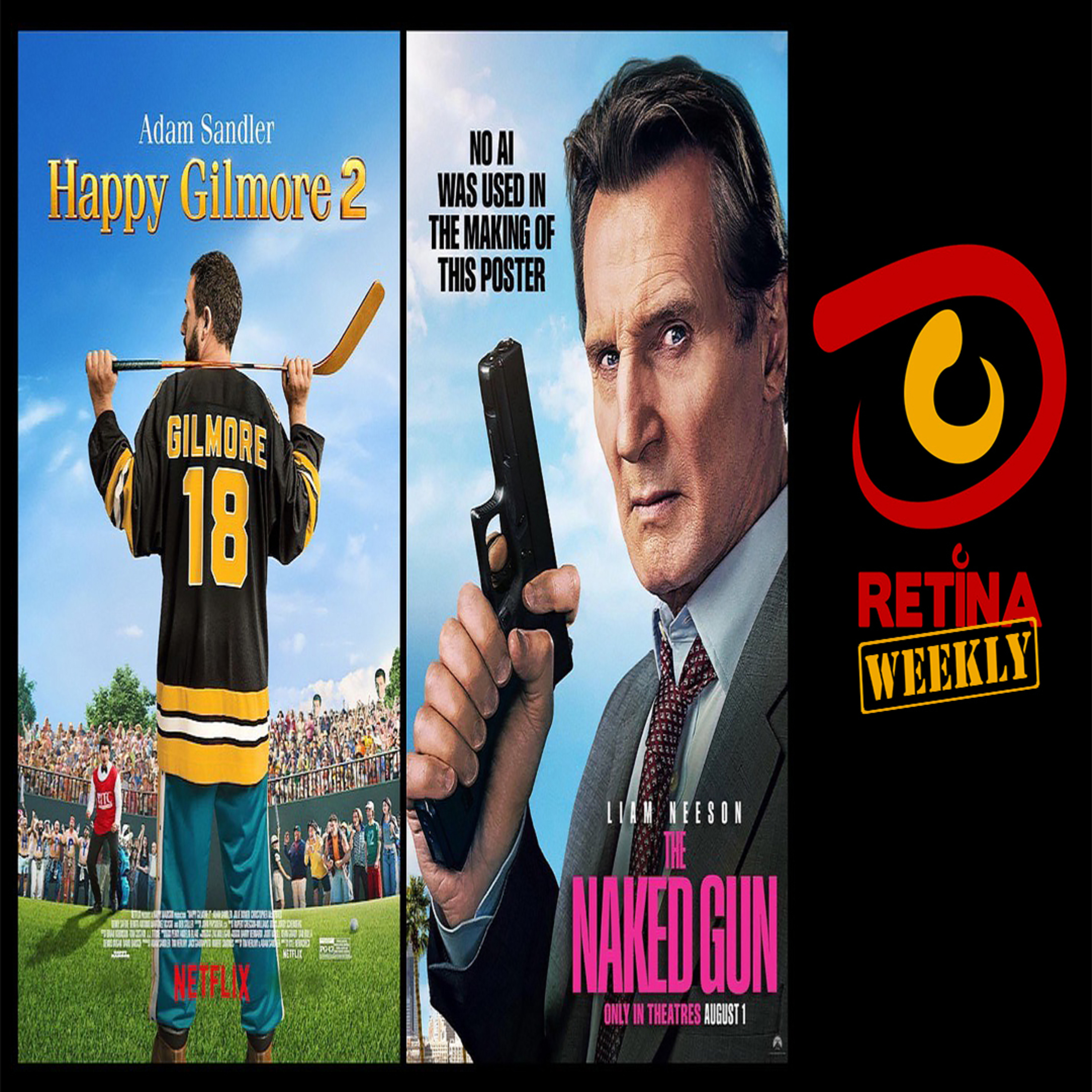 On this week's episode we review Happy Gilmore 2 and talk about other pop culture news!!! #HappyGilmore #HappyGilmore2 #AdamSandler #Netflix #NakedGun #PoliceSquad #AkivaSchaffer #LiamNeeson #PamelaAnderson #PaulWalterHauser #FantasticFour #WB #WarnerBros #Discovery #Cinemark #Roku #SydneySweeney #KamalaHarris #StephenColbert #SDCC #PredatorBadlands #TronAres #CoyoteVsAcme #PrideAndPrejudice #StarTrek #StarfleetAcademy #OliviaColman #EmmaCorrin #JackReynor #RachelBrosnahan #AppleTV #PresumedInnocent #MyBestFriendsWedding #PopCulture #ComicBooks #Movie #Television #RetinaWeekly #Retina #TeamRetina #WeHaveOurEyeOnYou