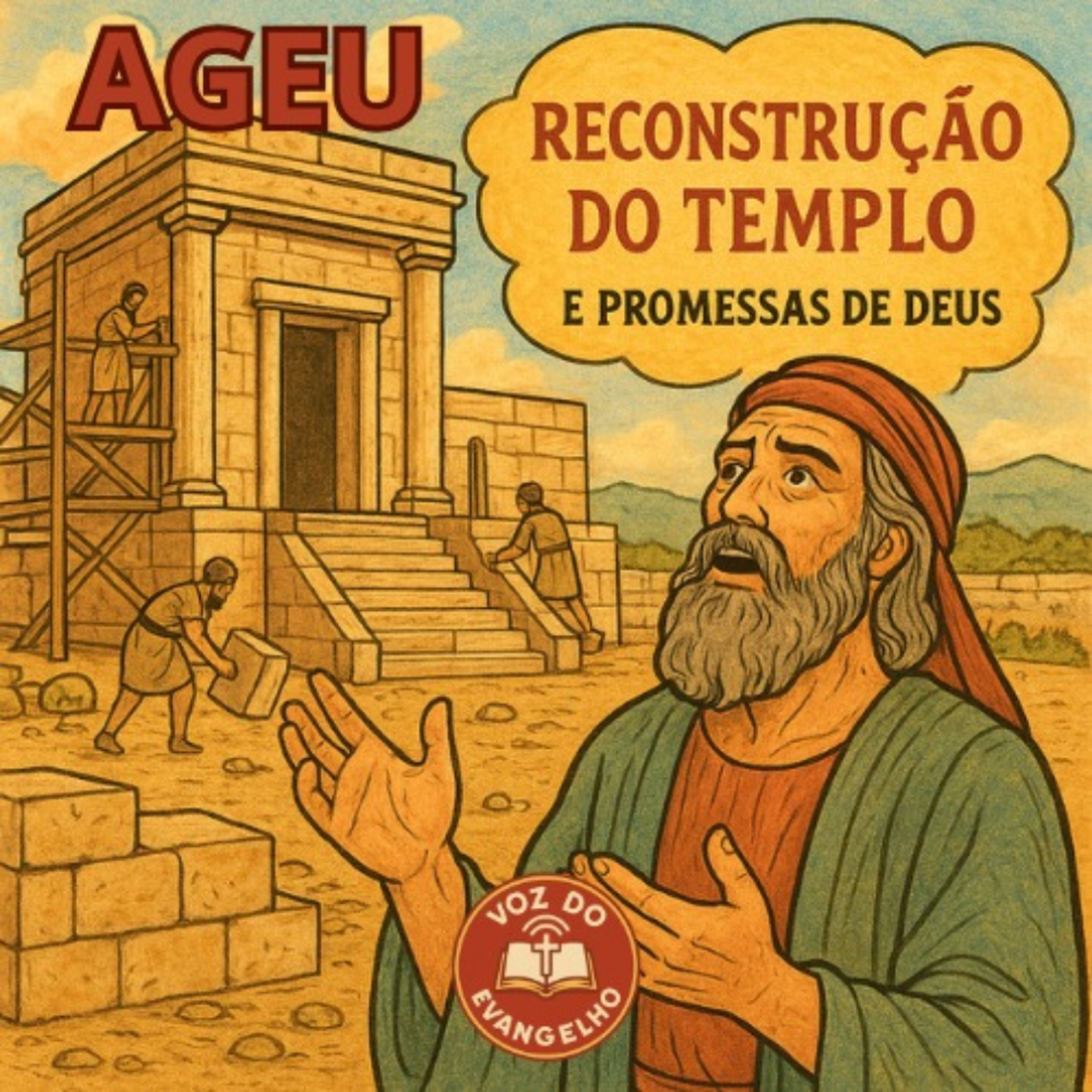 O Livro de Ageu, o trigésimo sétimo livro da Bíblia, que narra a história do profeta após o retorno dos israelitas do exílio babilônico. Ageu se concentra em incentivar o povo a reconstruir o Templo em Jerusalém, juntamente com o governador Zorobabel e o Sumo Sacerdote Josué, pois as pessoas estavam mais preocupadas com suas próprias casas. Através de Ageu, Deus expressa descontentamento, indicando que a falta de reconstrução do Templo resultou em escassez e colheitas ruins como punição. O texto descreve a obediência do povo e a promessa de Deus de que o novo Templo seria mais glorioso que o anterior, além de abençoar o povo e prometer a Zorobabel que ele seria um servo escolhido.