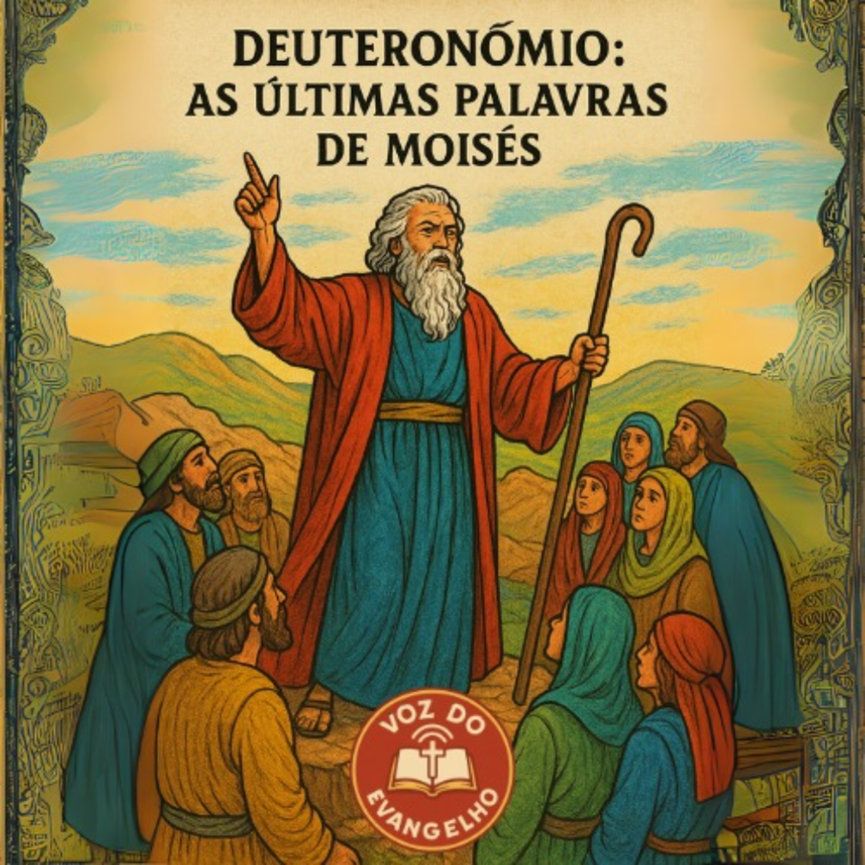 O texto principal é uma compilação de capítulos do livro de Deuteronômio, o quinto livro da Bíblia, que narra os discursos de Moisés aos israelitas nas planícies de Moabe antes de entrarem na Terra Prometida. Moisés relembra o povo sobre os quarenta anos no deserto, a importância das leis divinas recebidas no Monte Sinai e as bênçãos da obediência a Deus, além das advertências sobre a desobediência. O material também aborda a criação do Código Deuteronômico, que inclui regulamentos sociais e a nomeação de líderes. Por fim, detalha a morte de Moisés no Monte Nebo, sua proibição de entrar na Terra Prometida devido à desobediência, e a escolha de Josué como seu sucessor.