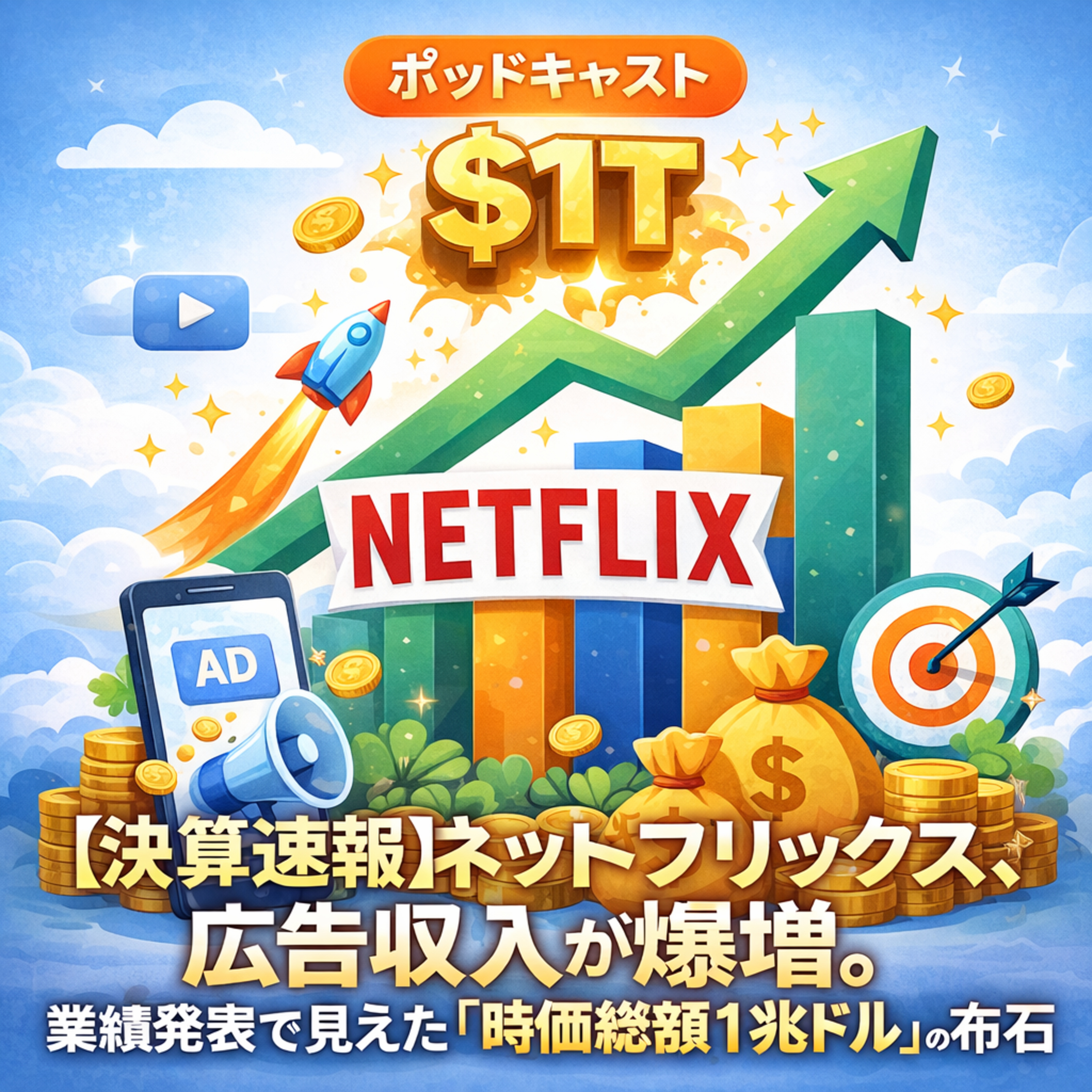 ネットフリックスの最新決算を分析。広告収入の急成長とワーナー・ブラザース・ディスカバリー買収提案から見える、時価総額1兆ドルへの戦略と課題を解説します。