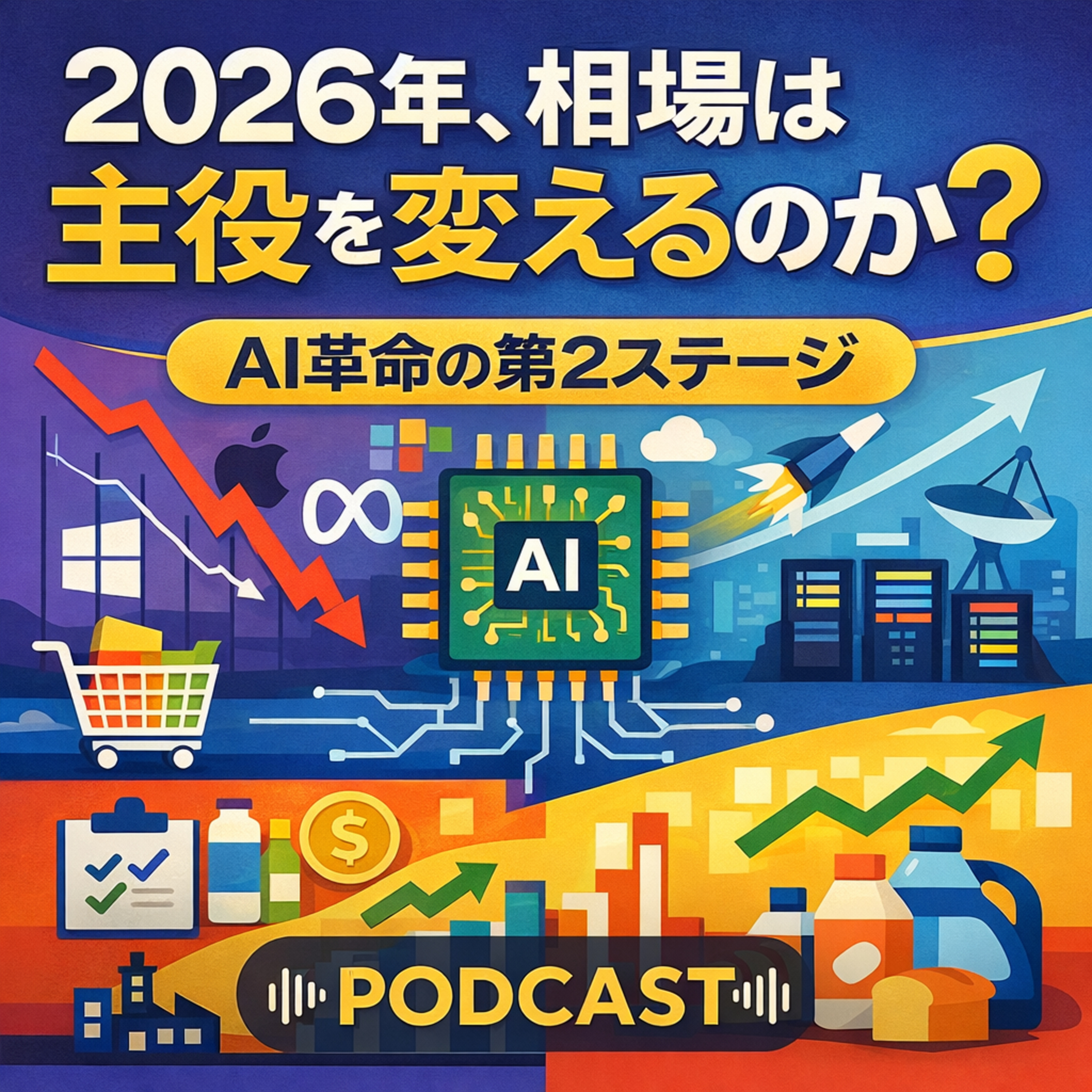 2026年、米国株の主役は交代するのか。ビッグテック失速とAI革命第2ステージを、半導体、生活必需品、ウォルマートの事例から読み解きます。