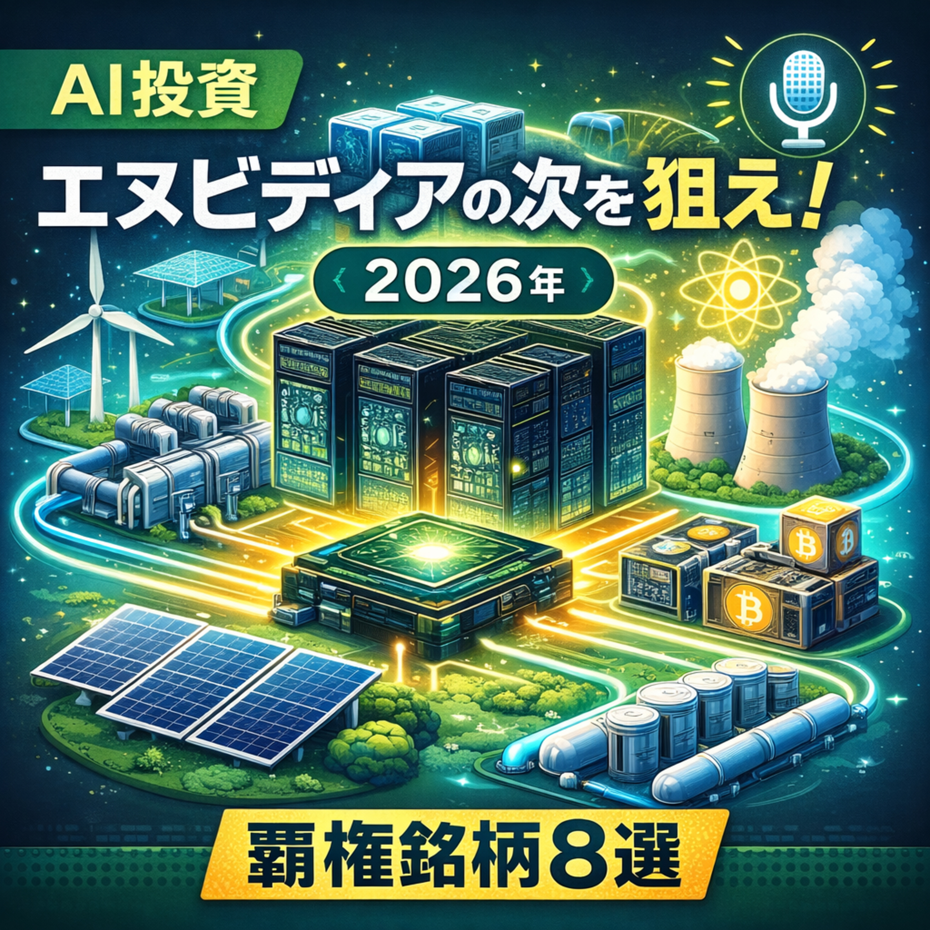2026年のAI投資はエヌビディアの次へ。電力、冷却、原子力、データセンターを支えるAIインフラ株8選を市場データと実例を基に徹底解説します。