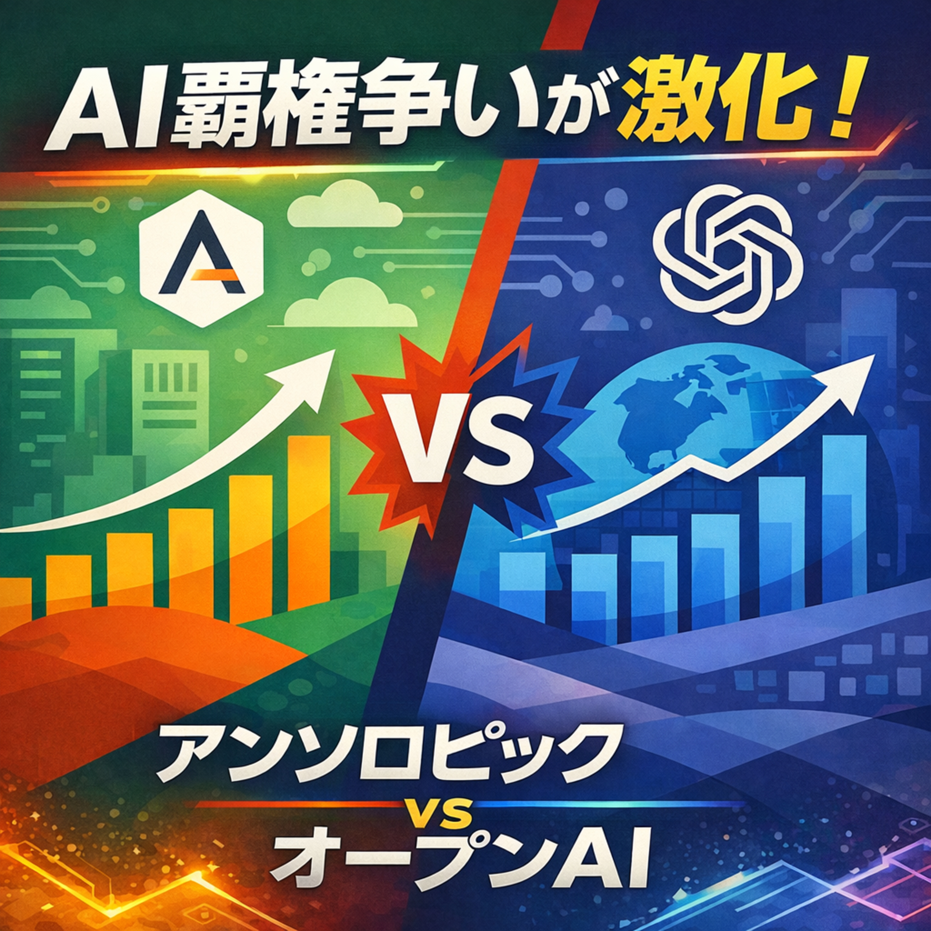 AI覇権争いが激化。急成長するアンソロピックがオープンAIの牙城に迫っています。最新データをもとにAI市場の勢力図の変化、企業価値、エンタープライズ戦略まで徹底分析します。
