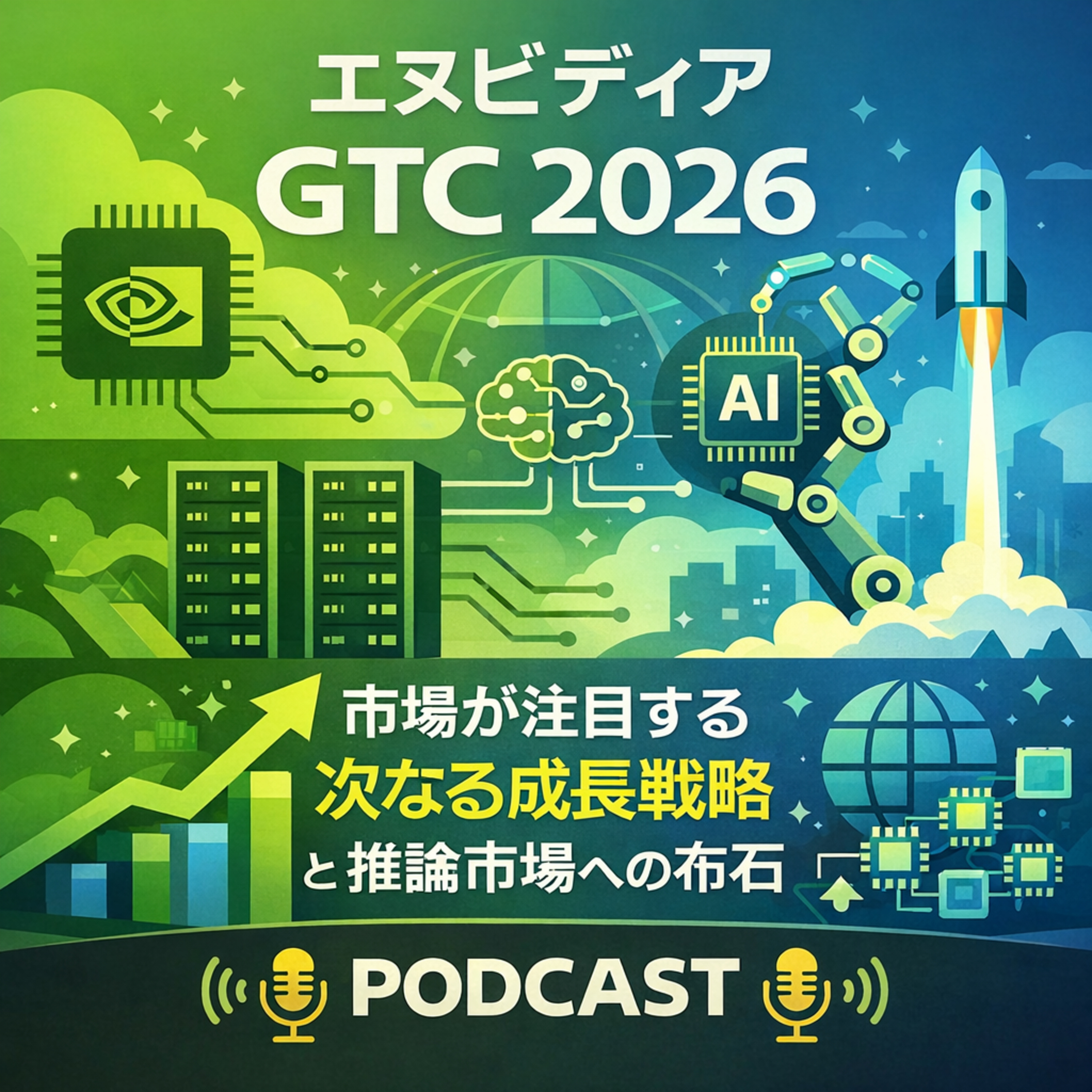 エヌビディア(NVDA)のGTC 2026開幕直前。市場が注目する次なる成長戦略、推論市場への布石、ハイパースケーラー需要の持続性をわかりやすく解説します。