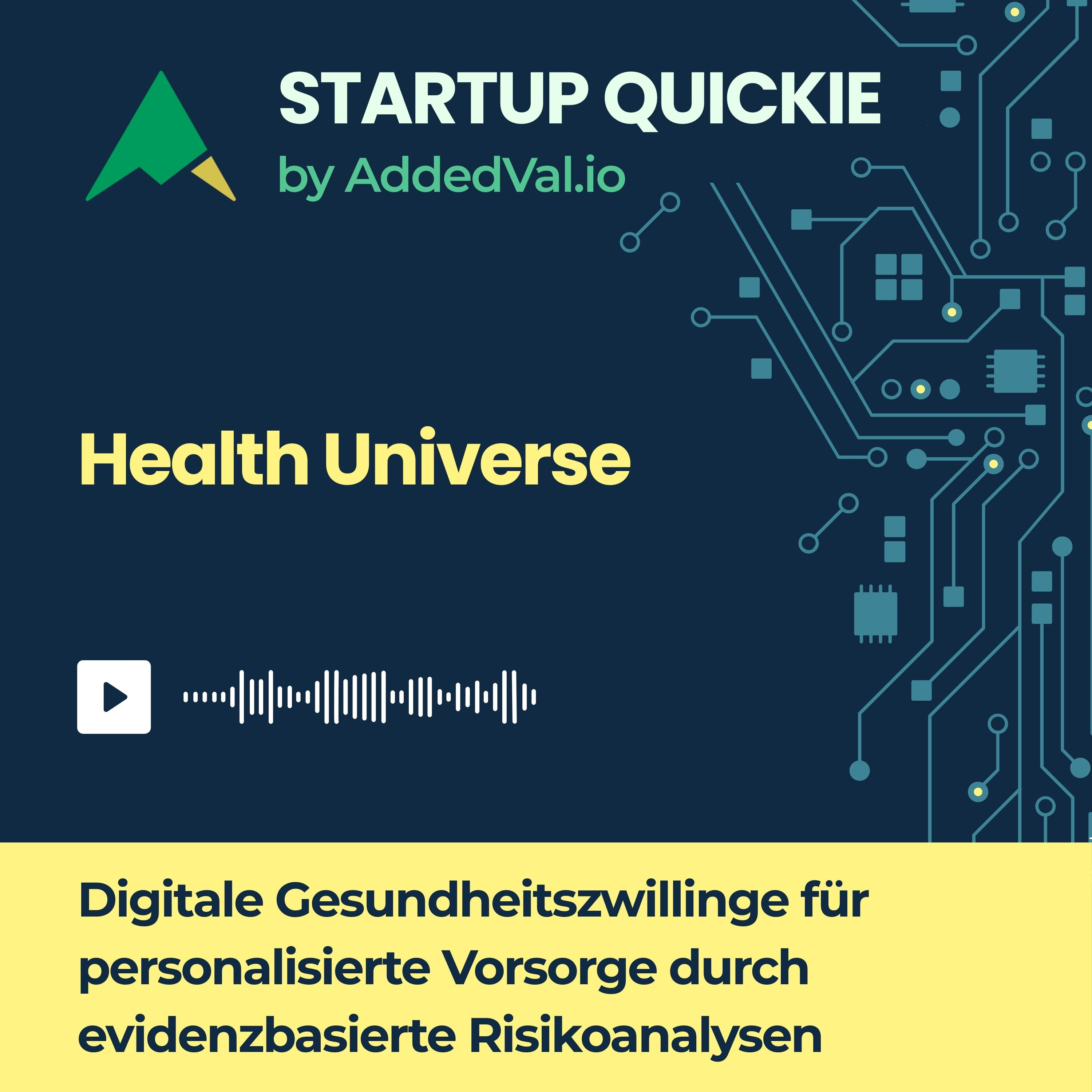 In dieser Folge werfen Noël und Mira einen Blick auf Health Universe, ein Startup aus dem Bereich Digital Health. Statt sich auf oberflächliche Fitness-Daten zu beschränken, will Health Universe echte Prävention möglich machen: mit personalisierten Risikoanalysen, der Integration von klinischen Modellen und einem digitalen „Health Twin“, der die eigene Gesundheit in Echtzeit abbilden soll.
