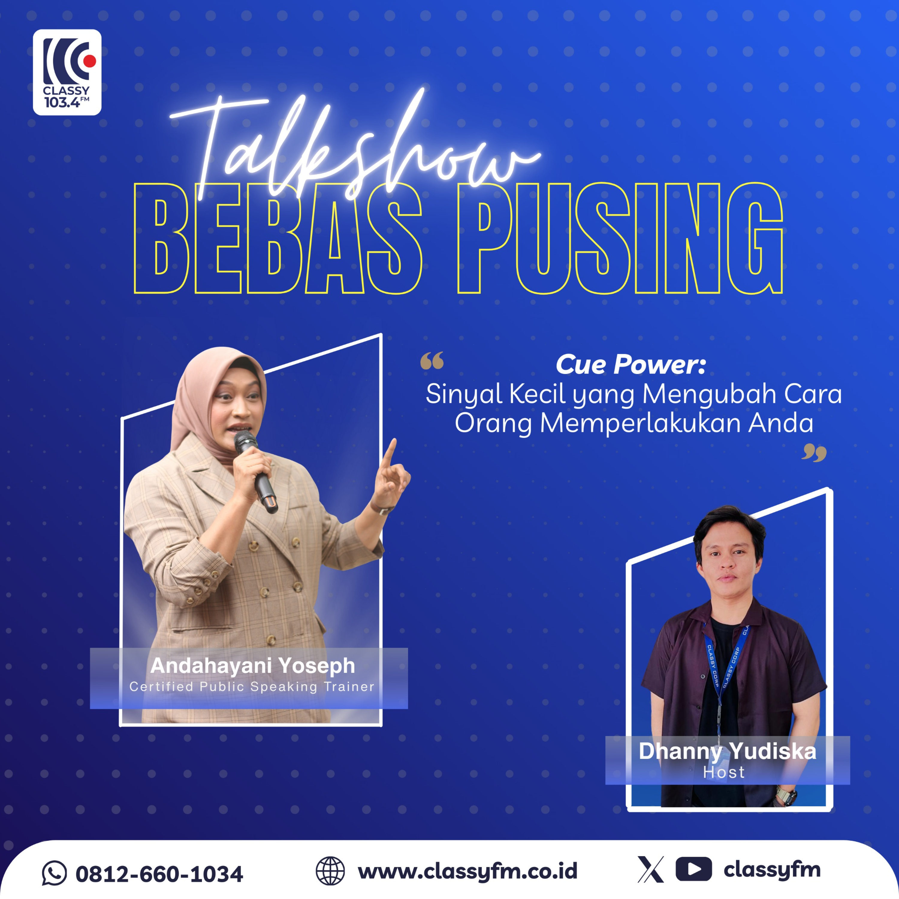 Classy people, yuk, cermat Talkshow Bebas Pusing bersama Coach Andahayani Yosep only on Classy FM!