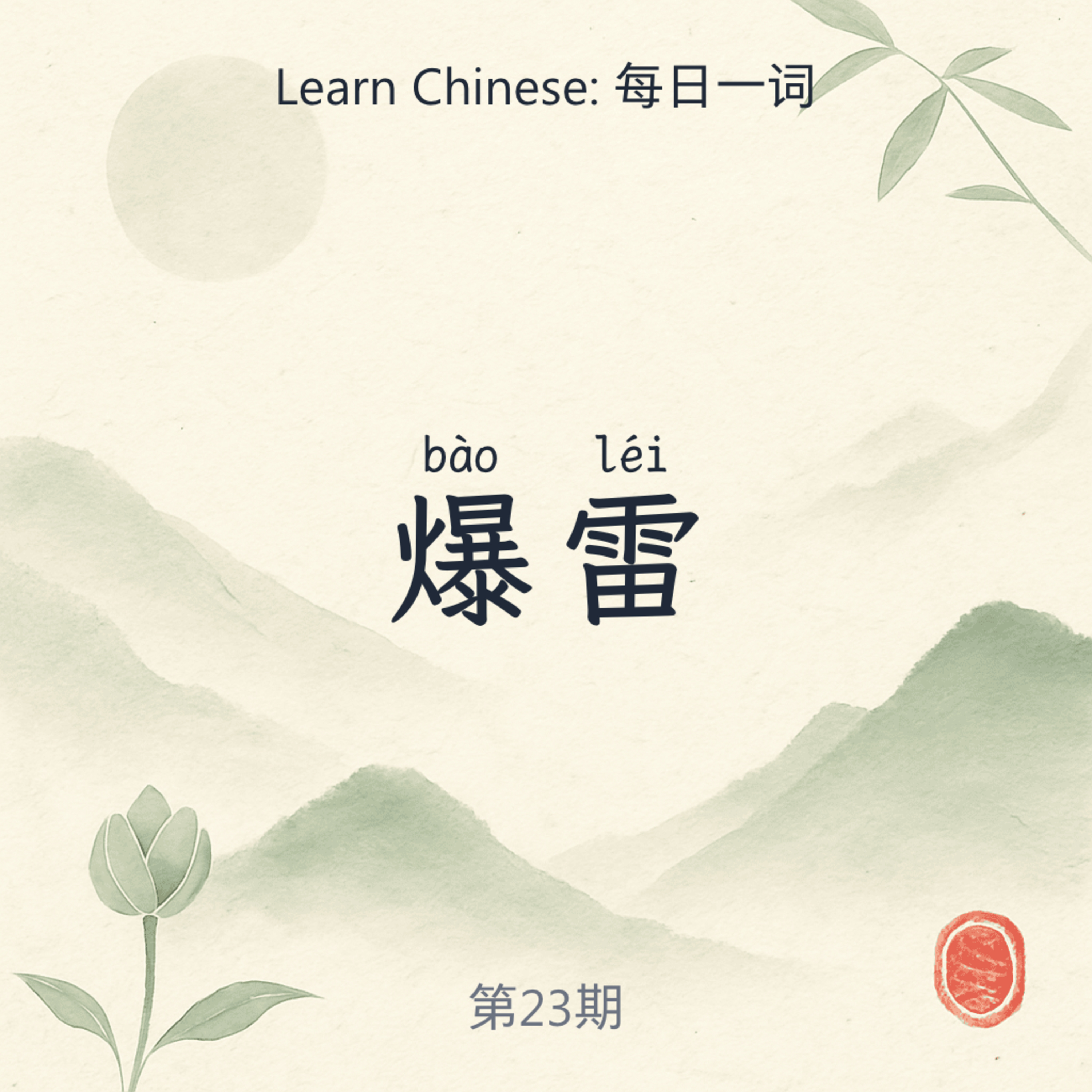 特师的每日一词,2026年1月22日的词汇是:爆 bào 雷 léi