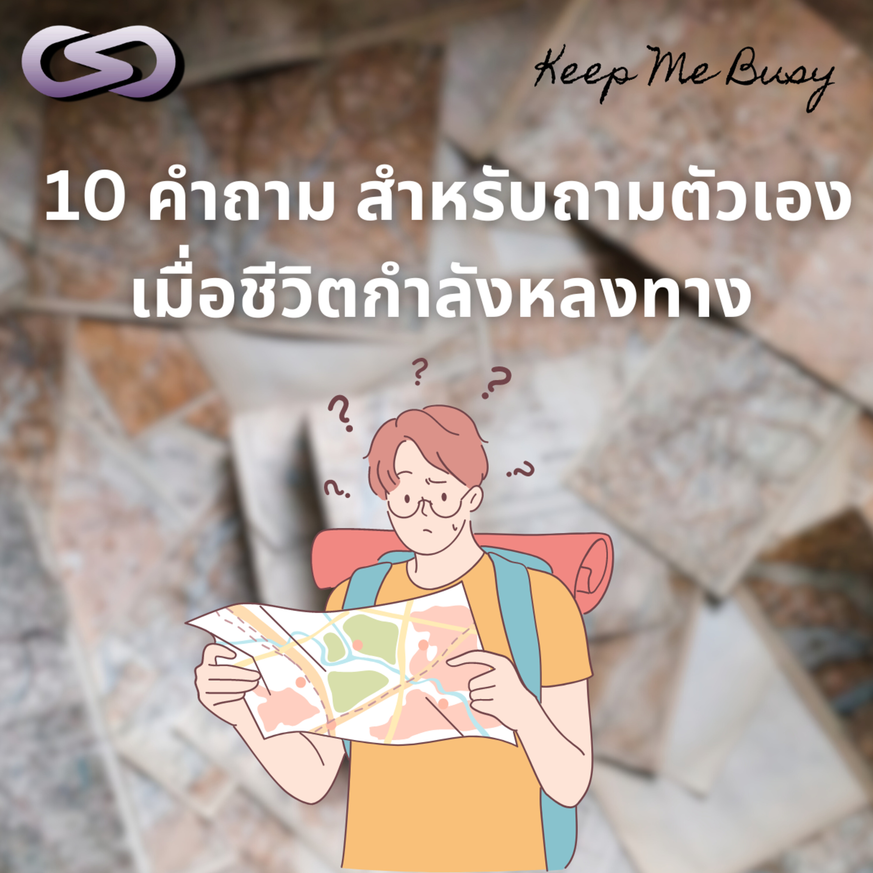 Keep Me Busy episode ที่ 168 จะมาชวนคุณผู้ฟังตอบคำถาม 10 คำถามสำหรับคนที่กำลังหลงทางและไม่รู้ว่าจะทำอย่างไรกับชีวิตต่อไปดีนะ หรือคนที่กำลังอยากจะรีวิวชีวิตตัวเองในช่วงที่ผ่านมาว่า เรากำลังใช้ชีวิตในแบบที่เราต้องการจริง ๆ อยู่หรือไม่ ถ้าพร้อมแล้วไปฟังและหาคำตอบพร้อม ๆ กันเลยค่ะ
