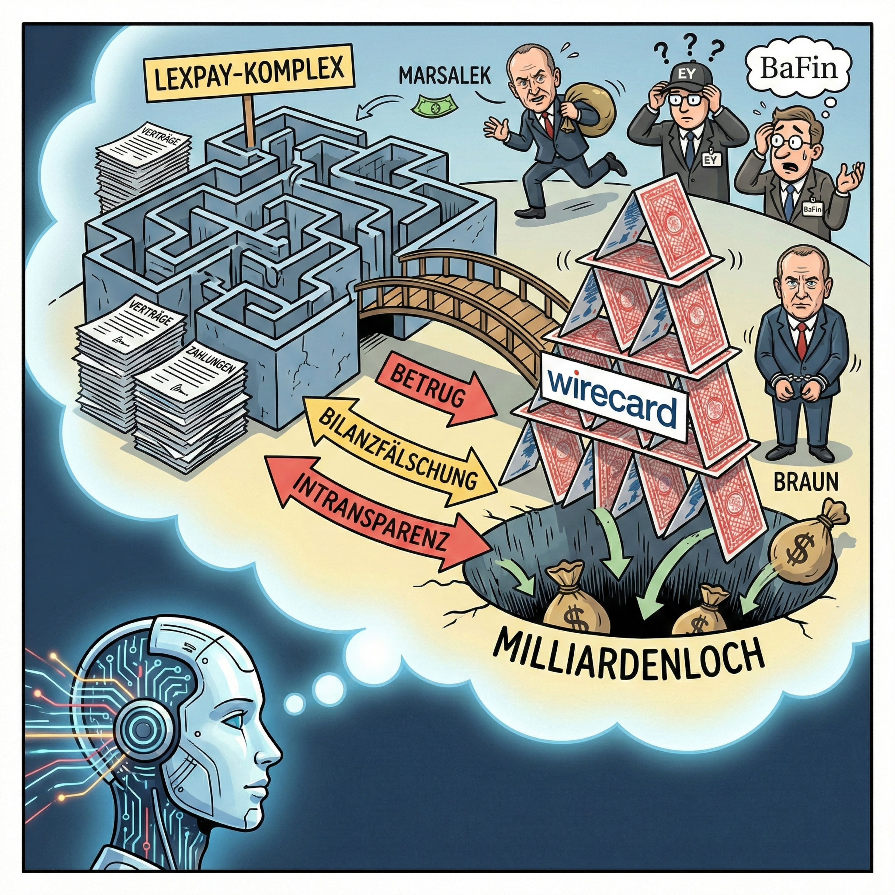 Wir haben den LexPay-Komplex, seziert.Wir haben gesehen, wie 1,9 Milliarden Euro als binäre Phantome erschaffen wurden und wie ein ganzes System aus Wächtern, Sehern und Politikern wegsah, während ein Maskierter Pilot die Welt betrog.