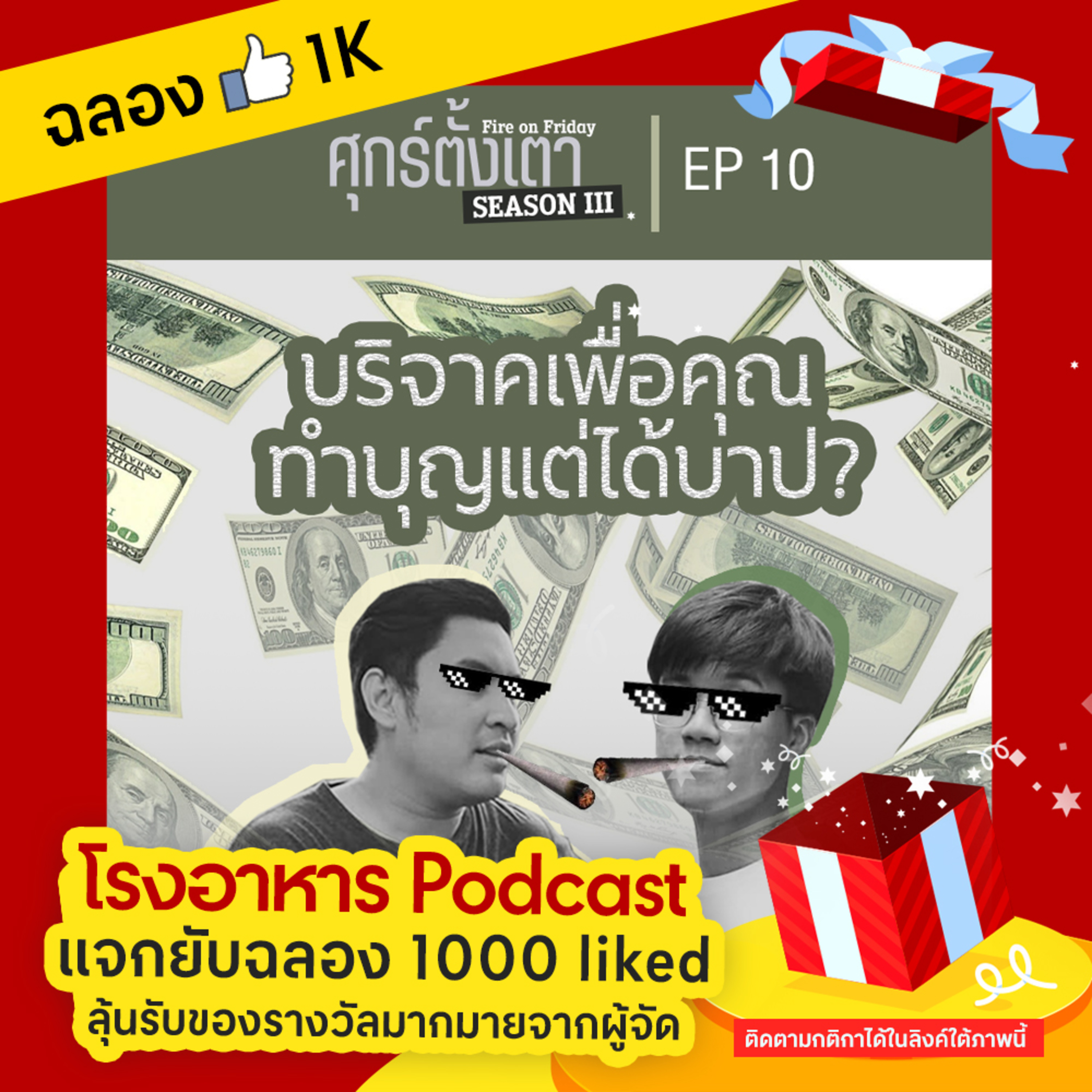 เอ๊ะอะ ๆ ก็บริจาค บริจาค บริจาคเต็มไปหมดเลย! งั้นจะไม่พูดถึงก็คงไม่ได้แล้วล่ะ พวกเราจึงชวนคุยเรื่องบริจาคซะเลย แต่ไม่ได้พาดพิงประเด็นดราม่าที่กำลังร้อนแรงอยู่ในขณะนี้นะครับ เราแค่ชวนคิดเรื่องบริจาคในแง่มุมต่าง ๆ และยังคงเกี่ยวข้องกับชาวเรา หรือมนุษย์เงินเดือนอย่างแน่นอน บอกเลยว่า EP.นี้ นอกจากเสียงดีแล้ว หัวข้อที่ชวนคุยก็เดือดไม่แพ้กัน ฉะนั้นอย่ารอช้าครับ หากาแฟอุ่น ๆ จิบไปฟังไปในตอนเช้า หรือจะไปกินชาบูและฟังไปด้วยในตอนเย็นก็เข้าทีนะ