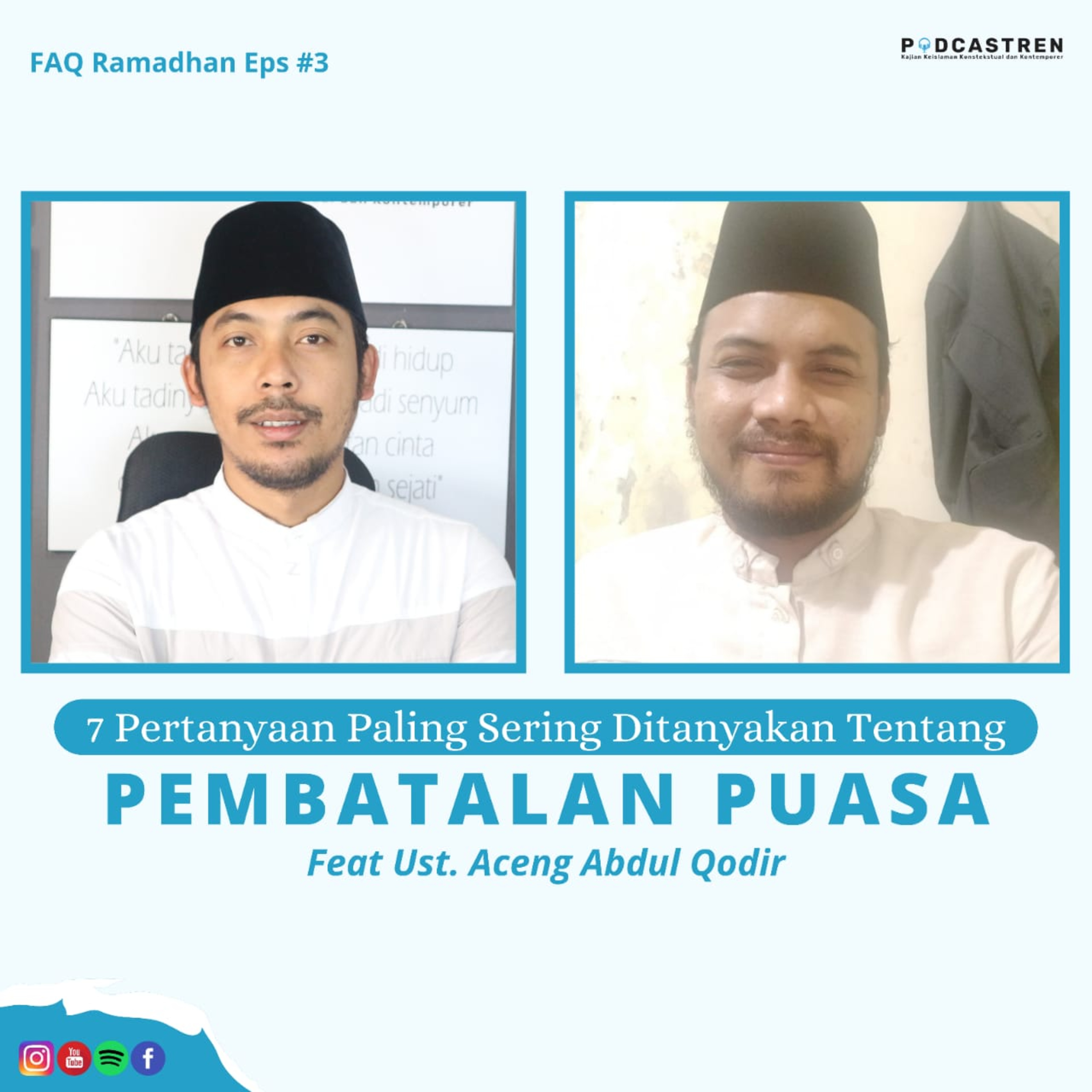 Pada episode ini Kang Irfan L. Sarhindi dengan Ustaz Aceng Abdul Qodir mendiskusikan pertanyaan-pertanyaan yang sering diajukan terkait dengan pembatalan puasa. Mimpi basah bikin puasa batal nggak? Pilek dan ingusnya tertelan, batal nggak? Gimana kalau dengan buang air besar atau kentut saat renang? Kalau nangis? Simak obrolannya di FAQ Ramadhan #3 "Yang Paling Sering Ditanyakan Soal Pembatalan Puasa" . #puasa #pembatalan #ramadhan