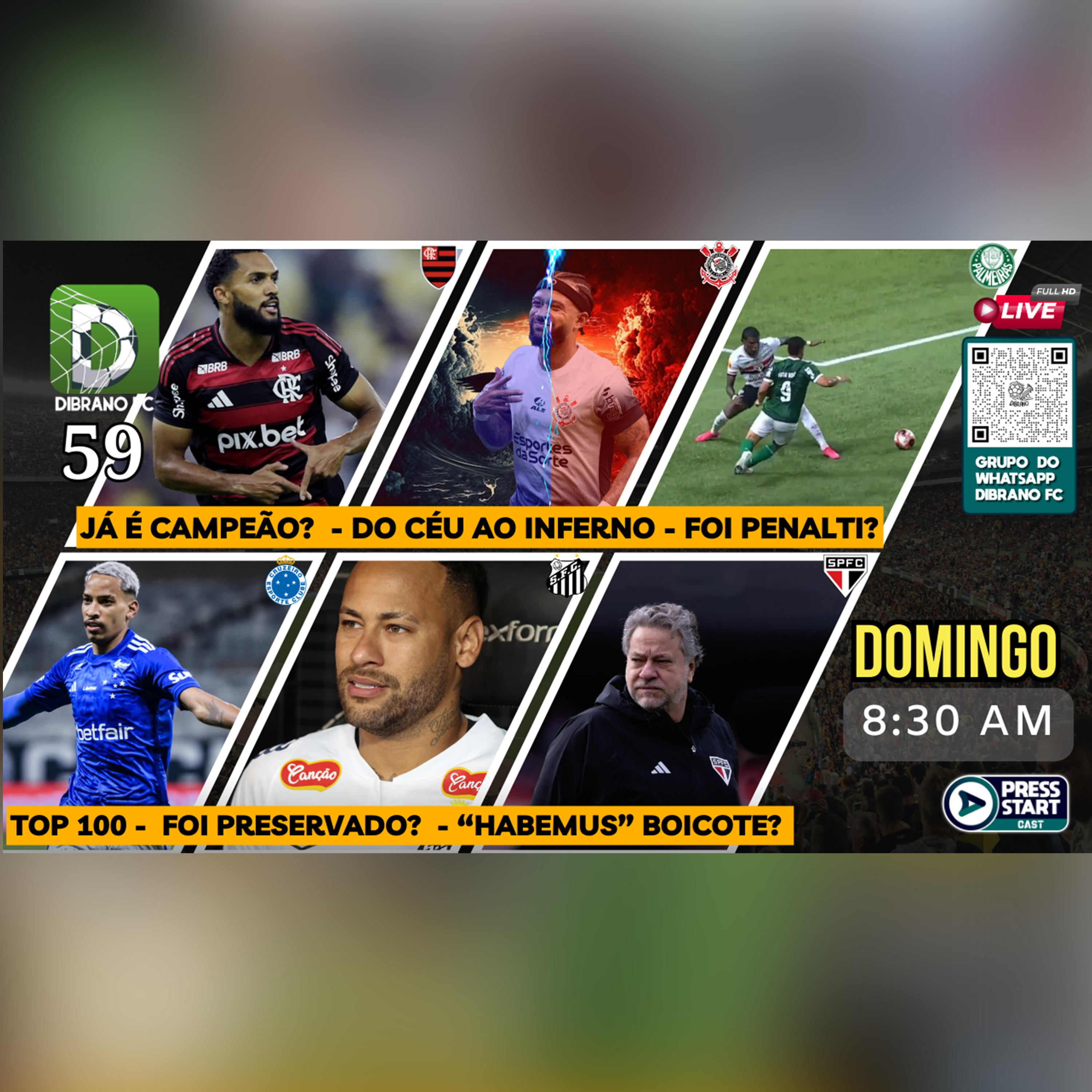 Fala Dibradores, Belezinha???Campeonato PaulistaO Corinthians venceu o Santos por 2x1 e carimbou sua classificação para a final do Paulista, venceu o Barcelona de Guayaquil por 2x0 no jogo de volta, porém no placar agregado ficou 2x3 e foi eliminado dá pré libertadores pela terceira vez.O São Paulo perdeu para o Palmeiras com pênalti polêmico por 1x2 e foi eliminado do Paulistão, agora só retorna no Brasileirão.O Santos com suposta Contusão/Preservação do Neymar perdeu para o Corinthians, está eliminado e só retorna no Brasileirão.O Palmeiras venceu o São Paulo, garantiu sua vaga na final e fará o Derbi final contra o Corinthians em 2 jogos, o primeiro é em casa e o segundo na casa do adversário.Campeonato MineiroO Cruzeiro e Botafogo fizeram um jogo-treino no fim da tarde deste sábado (15), no Nilton Santos. O resultado final teve versões diferentes: o clube carioca informou que venceu com os titulares e perdeu com os reservas; já os mineiros consideram que o placar final foi empate por 3 a 3. O Cruzeiro retorna somente no Brasileirão.O Atlético mineiro sagrou-se campeão mineiro após ser derrotado pelo América Mineiro por 1x0, porém no placar agregado ficou em Campeonato CariocaO Flamengo venceu o Fluminense pelo jogo de ida da final do Cariocão por 1x2 e faz o jogo de volta hoje.Cola aí!!!!#dibranofc #PressStartCast #libertadores2025 #Suldamericana2025 #Copadobrasil2025 #supercopadobrasil2025 #Corinthians #Palmeiras #SãoPaulo #Santos #Flamengo #Cruzeiro🎙️👾 Ouça agora!----------------------------------------------------------------ENTRE NO GRUPO DE WHATSAPP DO DIBRANO FC: https://chat.whatsapp.com/E3gIHrroURO2QBRd3dAvD8🌟 Apadrinhe nossos PodcastsConsidere nos apoiar para conseguirmos trazer mais conteúdo para vocêApoia.se – (para nos apoiar se você mora no Brasil)https://apoia.se/pressstartcastPatreon – (se você estiver fora do Brasil)https://www.patreon.com/pressstartcastE agora voce pode apoiar de forma individual através de PIX através da chave pressstartcastoficial@gmail.comUm Salve para nossos Padrinhos: Guinji Kenmochi, Elaine Sato e Gian Carlo Corazza Henrique DiRosaObrigado pelo apoio de vocês------------------------------------------------------------------------------------Instagram Gui Cortelli: @cortellioguiInstagram WiLL Cunha:@wilianscunhaInstagram Taty Oliveira: @0tatyoliveira0Instagram Henrique DiRosa: @dirosaedicoesInstagram Thais Munhoz: @thaismunhozcInstagram Bel Kotcho: @spfc_fanpageInstagram Marcão Bomediano: @marcosbomedianoINSTA DOS PODCASTS DA CASA: PRESS START: QUINTA B:EM COLICASGEEK WARSDibranofc80Bit TV----------------------------------------------------🔊 Ouça e Avalie nosso Podcast no Spotify dê 5 Estrelas e ajude-nos a alcançar mais ouvintes!Youtube - @pressstartcastoficial https://youtube.com/channel/UCID1aIFA8ghsxh1cdlBesbAConheça o trabalho da galera da PodNiPoBR @podnipobrDivulgue e ajude a espalhar a palavra!Quer criar transmissões ao vivo como esta? Confira o StreamYard: https://streamyard.com/pal/d/4531350959554560