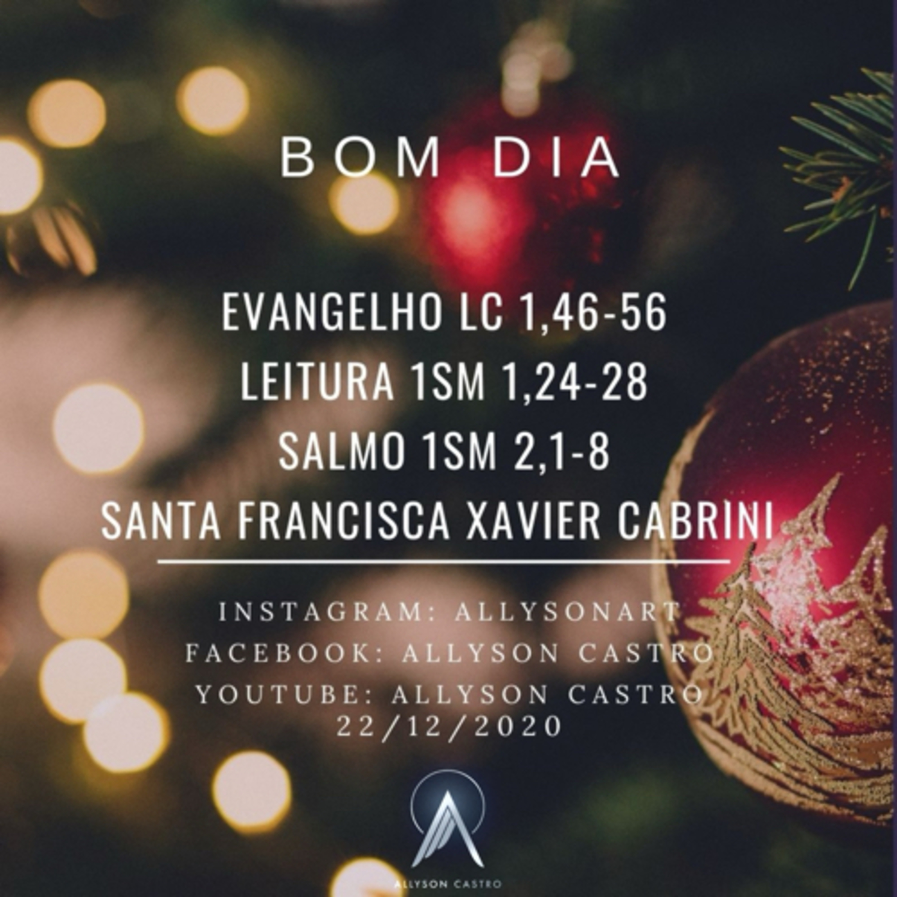 Naquele tempo, 46Maria disse: “A minha alma engrandece o Senhor, 47e o meu espírito se alegra em Deus, meu Salvador, 48porque olhou para a humildade de sua serva. Doravante todas as gerações me chamarão bem-aventurada, 49porque o Todo-poderoso fez grandes coisas em meu favor. O seu nome é santo, 50e sua misericórdia se estende, de geração em geração, a todos os que o temem.